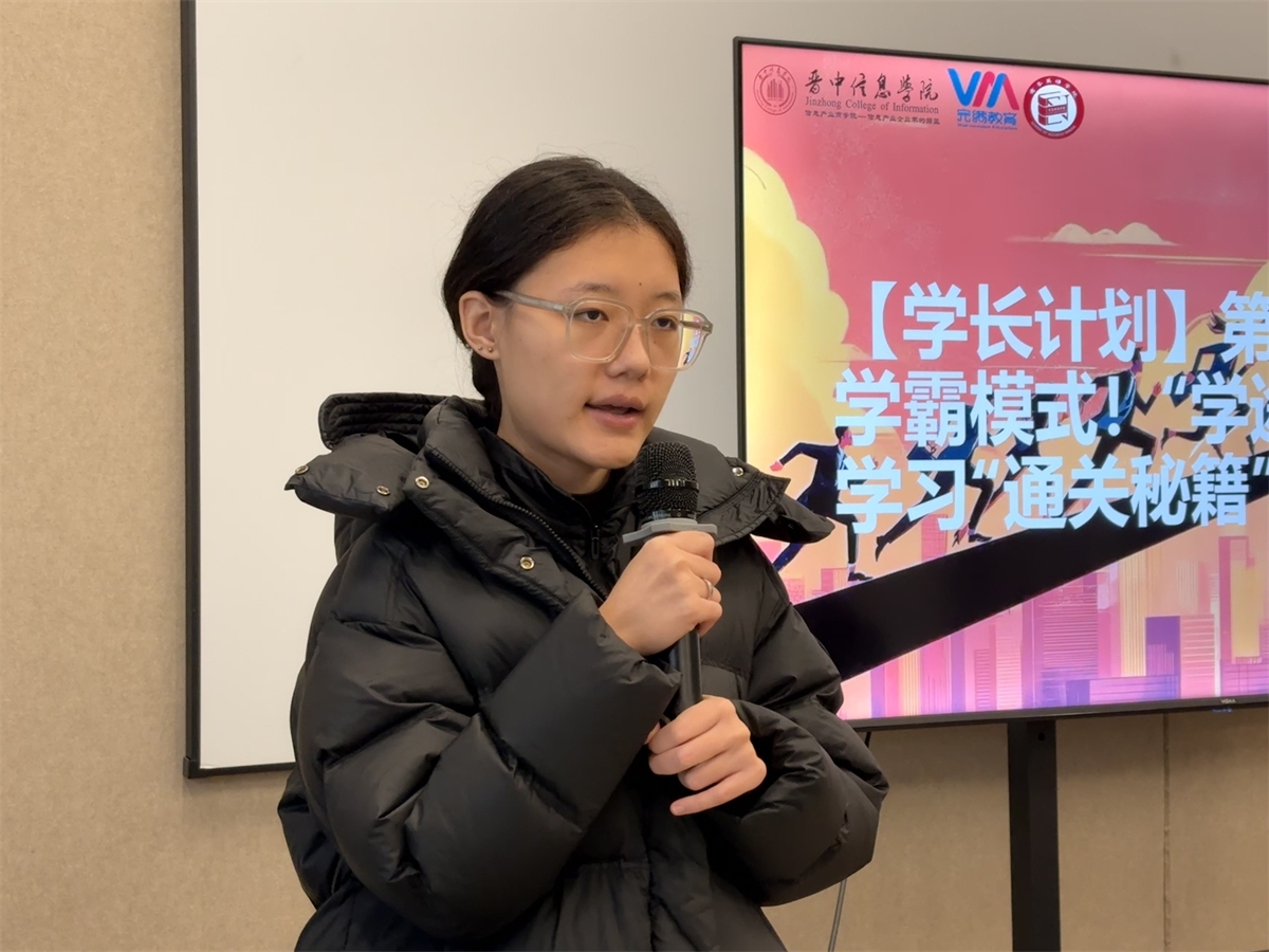 李一来、谢菲娅围绕英语四级备考与专业学习,系统介绍核心方法,详解“关键词定位法”“影音跟读训练”等实用技巧,田雨晨、王永义、王宇翔等学长学姐,则聚焦学业规划、学业与工作平衡及竞赛参与,回应“期末高效复习”“适合自身的竞赛选择”等高频问题,形成“分享—提问—解析”的有效闭环。