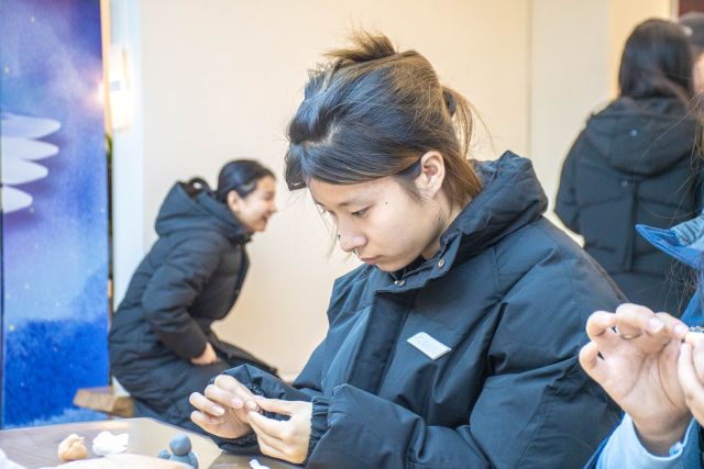 淡淡的粘土香气弥散在空气中,一双双专注的眼睛,一只只灵巧的手,正在捏塑着属于自己的小小世界。12月17日,艺术传媒学院团总支竞技体育部与纪念·文创产品社在三达书院·意空间内共同开启了这场以运动为核心的手工特别活动。活动以粘土为媒介,将文创设计与运动文化深度融合,为快节奏学习生活中的同学们打造了一处小小的避风港,让大家在指尖的揉捏间慢下脚步、释放压力,收获一份专属的宁静与快乐。
