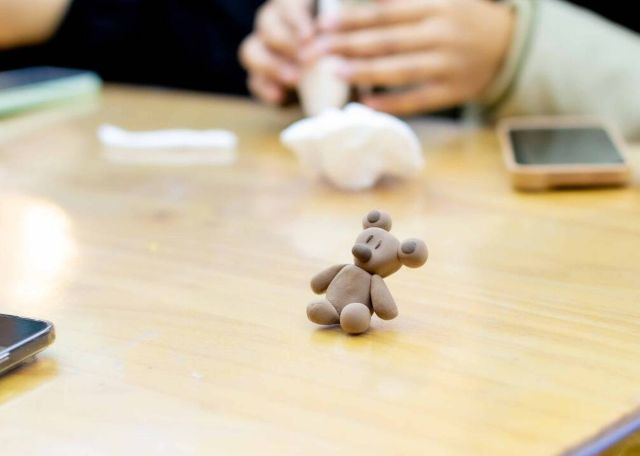 时间流转,室内的声音从交谈转为轻松的笑语。紧绷的肩膀不自觉地放松,呼吸也变得更加平缓。手工的慢时光,仿佛一场无需言语的冥想,每个人都在捏揉间找到了属于自己的频率与节奏,思绪也如丝线般被轻轻理顺。