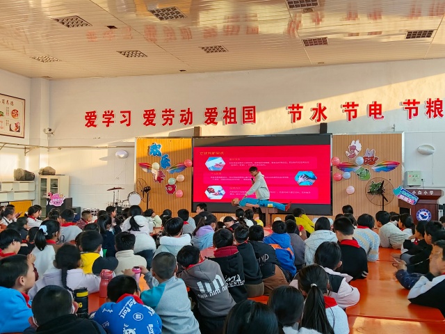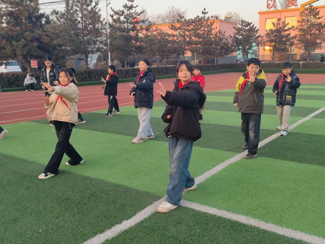 “马步扎稳,出拳有力。”精武武术社成员带领孩子们学习五步拳的基础动作,同时结合小白小学师生的实际需求,落地校园应急与健身赋能计划。激昂的音乐声中,武术社成员完成整套武术动作展示,现场接连发出欢呼与赞叹。小成员们主动参与学习,在招式练习中感受力量与节奏的配合,动作虽显稚嫩,态度却十分专注。