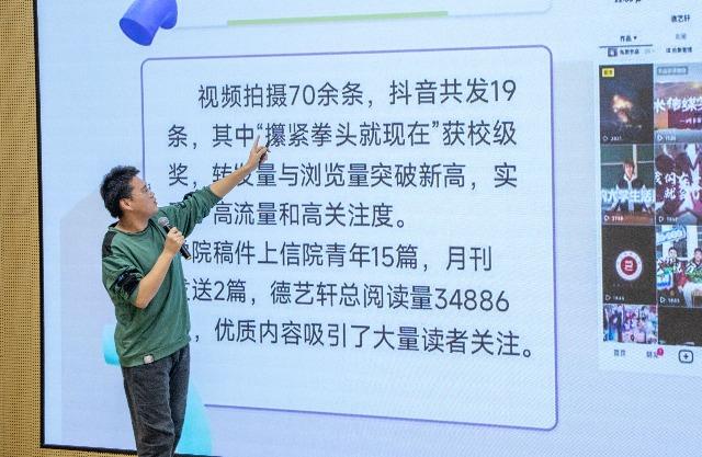本次活动旨在通过多媒体展示形式,引导青马学员结合实践经历、成长感悟、学习心得与未来规划,深化青年马克思主义者培养工程的实效,进一步加强学生骨干队伍建设。十一位学员的分享内容扎实、形式生动:既有依托数据支撑的成果总结,也有针对不足的深刻反思;既有对团队协作的温暖回顾,也饱含服务同学的诚挚初心。学员们以详实的事例、朴实的语言,生动展现了艺术传媒学院青年骨干扎根岗位、砥砺奋斗的青春风貌。