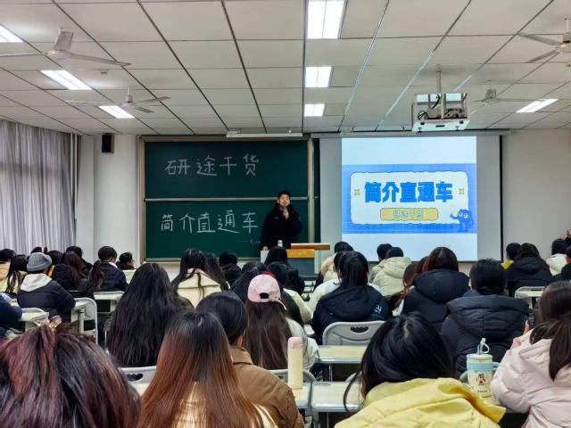 为深入践行完满教育育人理念,精准破解考研学子在撰写个人简介时的难题,晋中信息学院考研与公考协会于12月24日下午在七教104举办了“研途干货,简介直通车”分享会。此次活动搭建了一个高效精准的技巧传递平台,吸引了众多学子的踊跃参与,现场座无虚席,充分体现了学子们对升学发展的高度关注和积极追求。