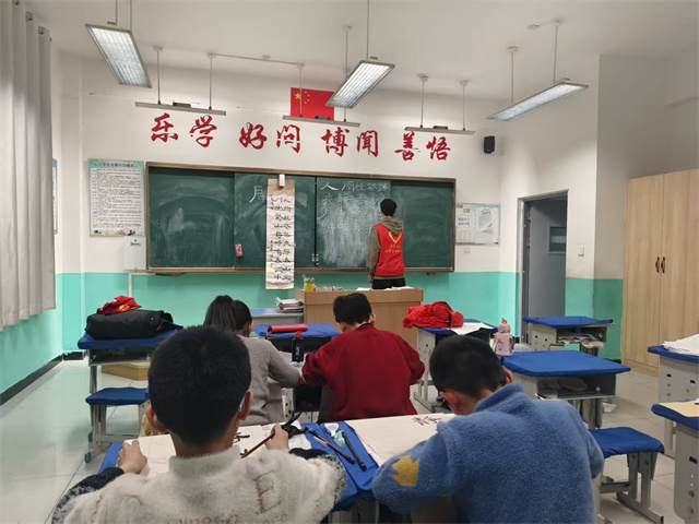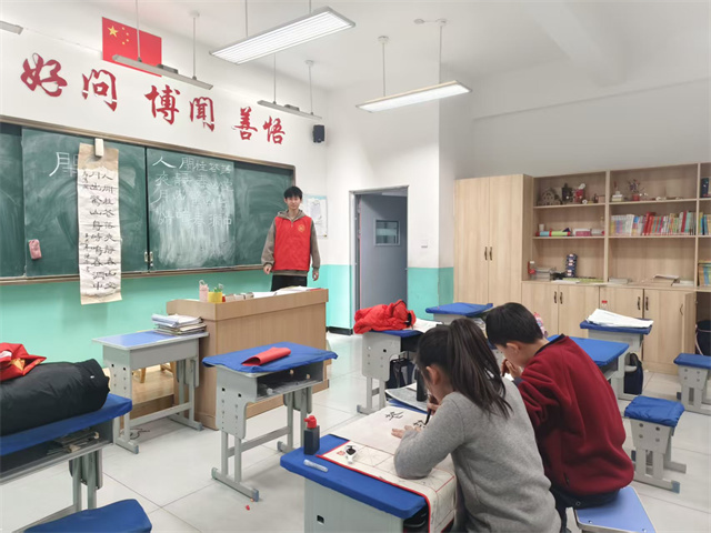 活动尾声,志愿者还将孩子们的书法作品展示在讲台上,希望这份墨香记忆能伴随孩子们成长。这些稚嫩却饱含心意的笔墨,不仅定格了这个冬天的温暖时光,更将成为伴随孩子们未来成长的珍贵记忆。志愿者王奕朝表示:“第二季支教的收官,绝非终点,而是一个崭新的起点。竹贤林书法社将以此为契机,继续深耕乡村书法教育的沃土,探索更契合儿童天性的教学方式,让翰墨书香真正浸润乡土,长久地萦绕在东邻韩村的课堂之上。”