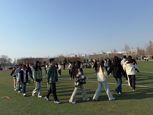 如果说“名字叠叠乐”是温润的开场,那“数字抱团”则瞬间点燃了全场的热情。“5!”主持人一声令下,刚刚还悠闲站立的同学们瞬间“动”了起来,快速寻找伙伴,紧紧相拥。奔跑、呼唤、计数,每一次数字的变换都伴随着一阵紧张又兴奋的骚动。在一次次默契的组队中,最初的生涩感被奔跑的汗水和结实的拥抱冲刷殆尽,获胜小组的欢呼更是将气氛推向了第一个小高潮励。