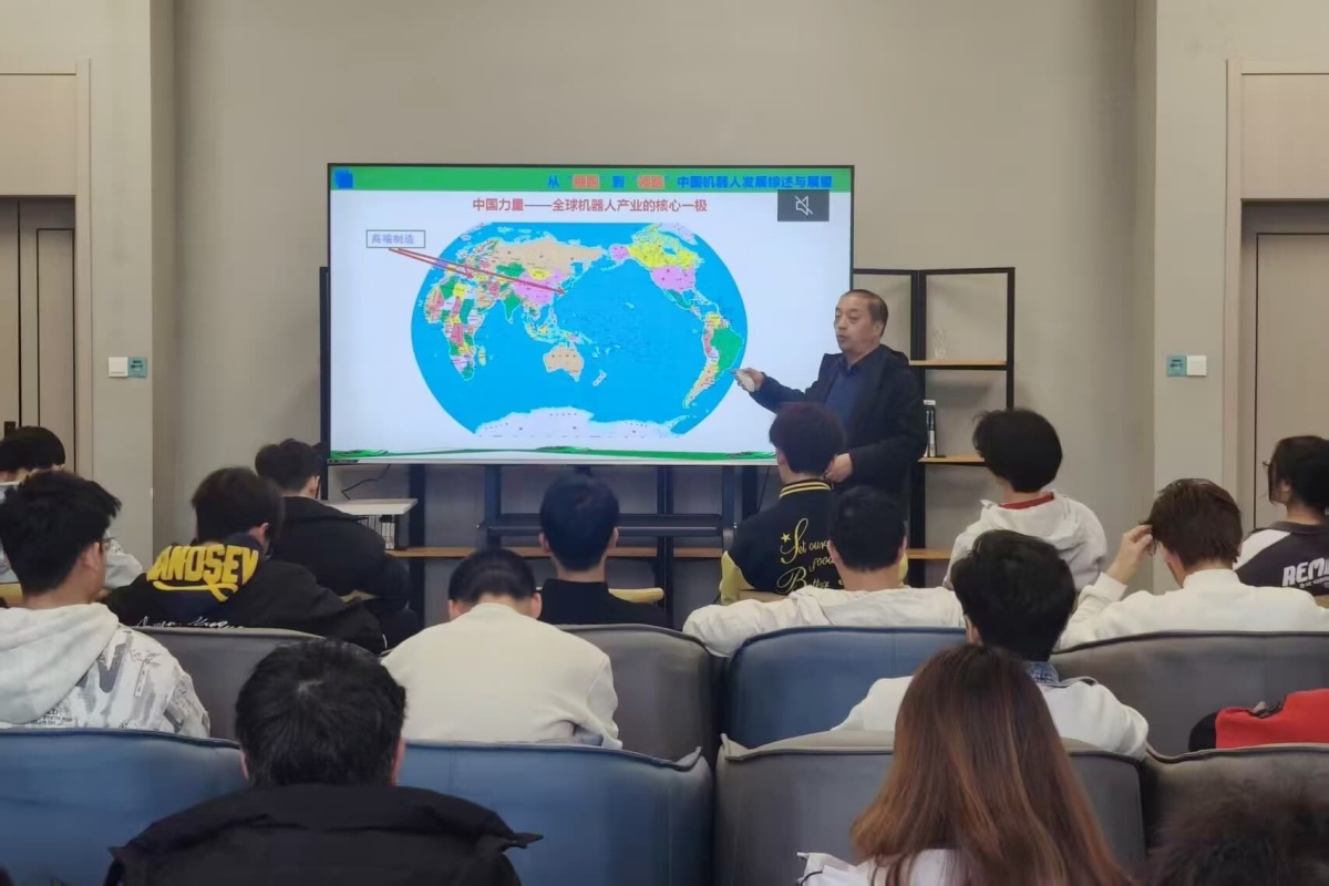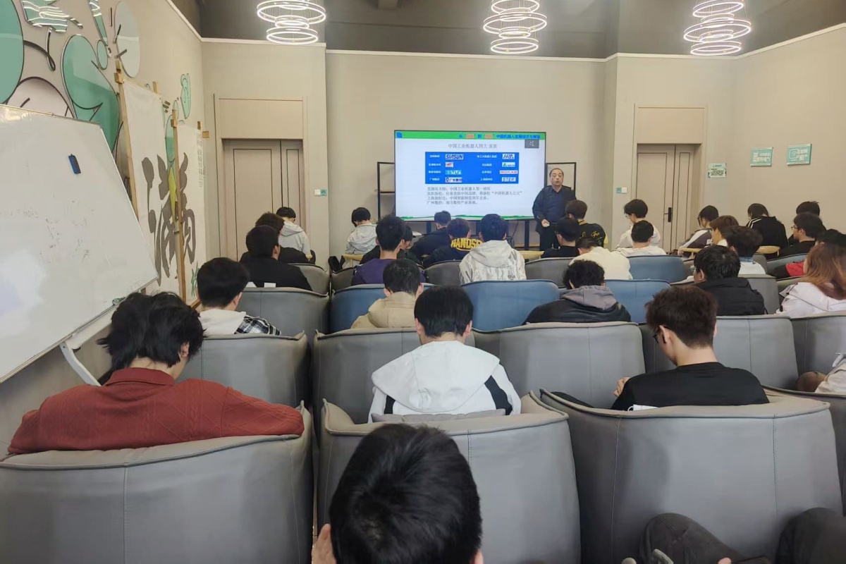 当机械的齿轮与时代的脉搏同频共振,当硬核科技与产业前沿交相辉映,一场关于中国智造的思想盛宴悄然启幕。3月25日下午,由智能工程学院团总支社团管理部主办的“智多星”赋能成长计划第22期主题讲座在上河书院214自如·完满超级空间开讲,本次讲座特邀傅建平副教授与高级工程师吕晓丹担任主讲嘉宾,以“中国机器人产业发展综述与展望”和“超级装备采煤机”为核心内容,带领在场学子解锁科技前沿,感受中国制造的磅礴力量,为同学们铺展了一幅中国科技从跟跑到领跑的壮阔画卷。