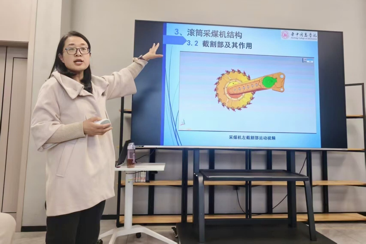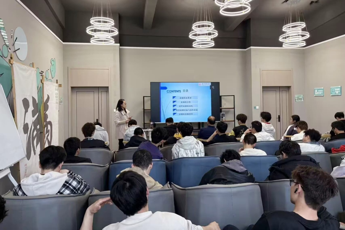 随后,吕晓丹高级工程师以“超级装备:采煤机”为主题,揭开了硬核工业装备的神秘面纱。她从采煤机的发展史讲起,梳理国际与国内技术迭代的关键节点,详细拆解采煤机的分类与核心结构,让复杂的机械原理变得通俗易懂。通过MG1000/2660智能型采煤机等案例,展现了中国煤矿装备从技术引进到自主研发的跨越,生动诠释了“大国重器”背后的工匠精神与创新智慧,让学子们直观感受到中国工业制造的坚实底气。