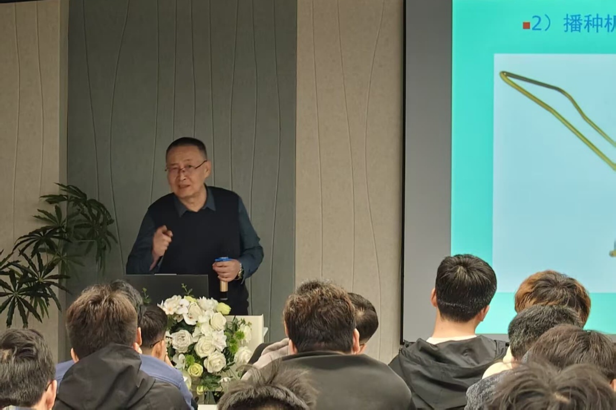 紧接着,主讲嘉宾吴海平教授围绕《科技赋能农耕,机械助力种菜》展开分享,聚焦我国蔬菜生产机械化的发展现状与突破方向。他指出,我国作为蔬菜生产和消费大国,蔬菜生产综合机械化水平仍处于初始阶段,受种植标准不统一、机具成本较高、补贴覆盖不足等因素制约,全程机械化生产面临诸多挑战。针对痛点,吴教授详细拆解了蔬菜生产全流程的核心技术,从精细化整地、精量化播种,到高效化移栽、智能化收获,逐一介绍了各环节的技术要点与装备体系,并用移栽机械实景作业图片,直观展现了机械种菜的高效与精准。同时,他强调了农艺与农机深度融合的重要性,提出农艺标准化与农机适配性双向协同的发展路径,为同学们展现了现代农业的智能新图景。