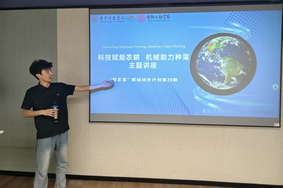 讲座伊始,申书昊以饱满的热情开场,向到场师生介绍了本次活动的背景与意义。他提到,“智多星”赋能成长计划始终致力于为同学们搭建跨领域学习、沉浸式成长的平台,本次讲座聚焦视觉技术与现代农业的跨界融合,既是专业知识的延伸拓展,更是学科赋能乡村振兴的生动实践,希望同学们能在讲座中汲取知识、开阔视野,以科技为犁,耕耘青春理想。随后,申书昊隆重介绍了两位主讲嘉宾,现场响起热烈掌声,正式拉开讲座帷幕。