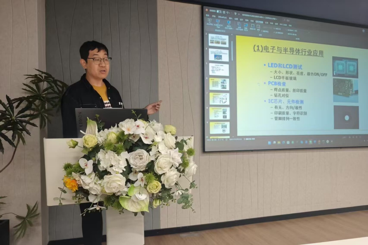 张孝元副教授以《初识视觉技术:从理论到实践》为题,为同学们系统讲解了视觉技术的核心知识与应用场景。张孝元副教授从计算机视觉与机器视觉的定义出发,清晰地区分了二者“质的分析”与“量的分析”的核心差异,梳理了视觉技术在电子半导体、医药、汽车、机械制造等多行业的落地应用。从火星探测器的环境感知,到工业生产线的零件检测;从医学影像的智能分析,到印刷品的质量校验,张教授用丰富的案例、直观的图示,将图像数字化、灰度直方图、投影变换等抽象原理拆解为通俗易懂的内容,让同学们深刻理解了视觉技术作为“机器之眼”的核心价值,为后续农业领域的技术应用筑牢了理论根基。
