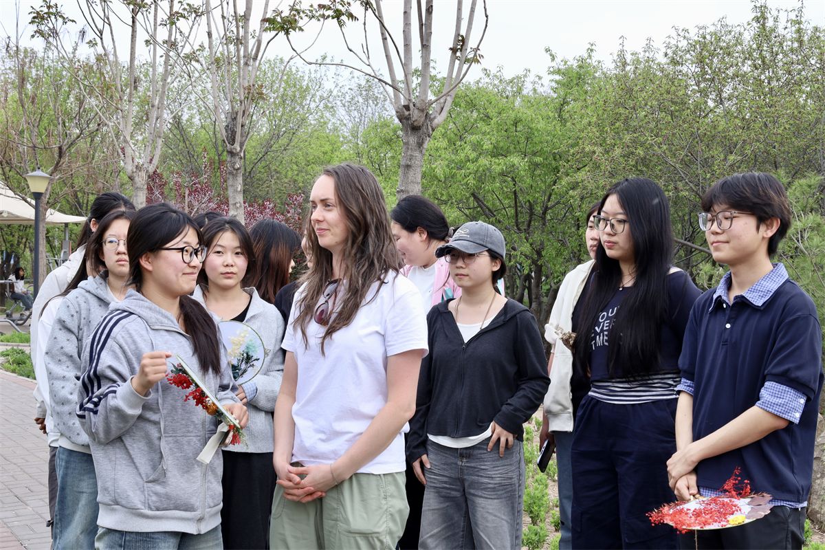 伴着融融春意,同学们移步太行湖,与外教老师Kristin开启春日探寻与中外文化交流之旅。大家漫步湖畔,低头找花、采草,大家一边压花,一边聊起不同文化里的春天:中国的“一年之计在于春”与西方的“April showers bring may flowers”。湖风吹过,湖畔清风拂过,几句英语对话时远时近,谁也不觉得是在刻意“学英语”。