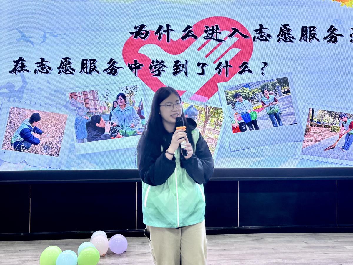 活动开场,没有冗长的介绍,只有一段段带着温度的故事。绿“环”梦“净”专项服务队队长刘依林将大家引入她的环保世界:在社区宣讲时,她教老人用废旧纸箱做“垃圾分类箱”,看着长辈们把剪好的箱子贴满彩纸,皱纹里漾起的笑意,让她忽然懂了“环保不是口号,是把种子播进人心”……她的讲述里没有华丽辞藻,只有手套磨破的指尖、晒出分层的手臂、暴雨天护住宣传册的脊背——这些藏在细节里的坚持,像萤火般点亮了在场每个人对“志愿”的理解。