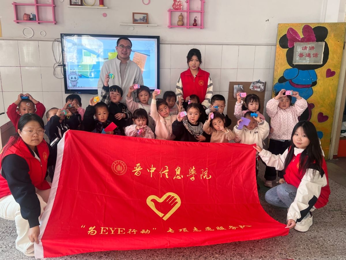 为守护幼儿明亮双眼,帮助小朋友们培养良好护眼习惯,10月16日,为EYE行动专项志愿服务队以“瞳住好时光,眼护新视界”为主题,与朝阳村幼儿园小朋友们开展了一场趣味十足的爱眼护眼活动。活动通过知识讲解、手指操等环节,将枯燥的护眼知识转化为生动有趣的体验,让小朋友们在欢乐中学习、在实践中成长。