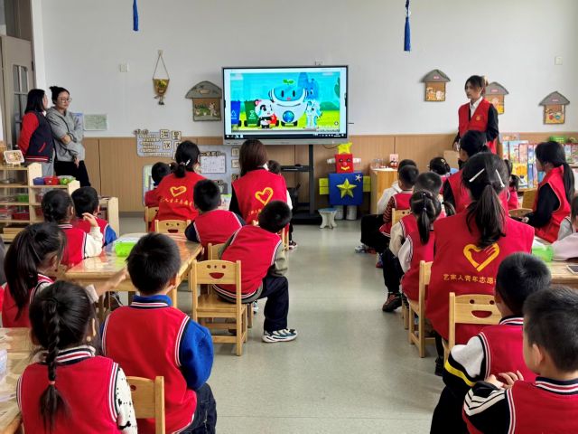 活动伊始,太谷二幼的教室里满是期待的气息。志愿者播放的环保主题动画短片“圈粉”全场——色彩鲜亮的画面、生动有趣的情节,把“垃圾要分类”的道理藏进故事里。