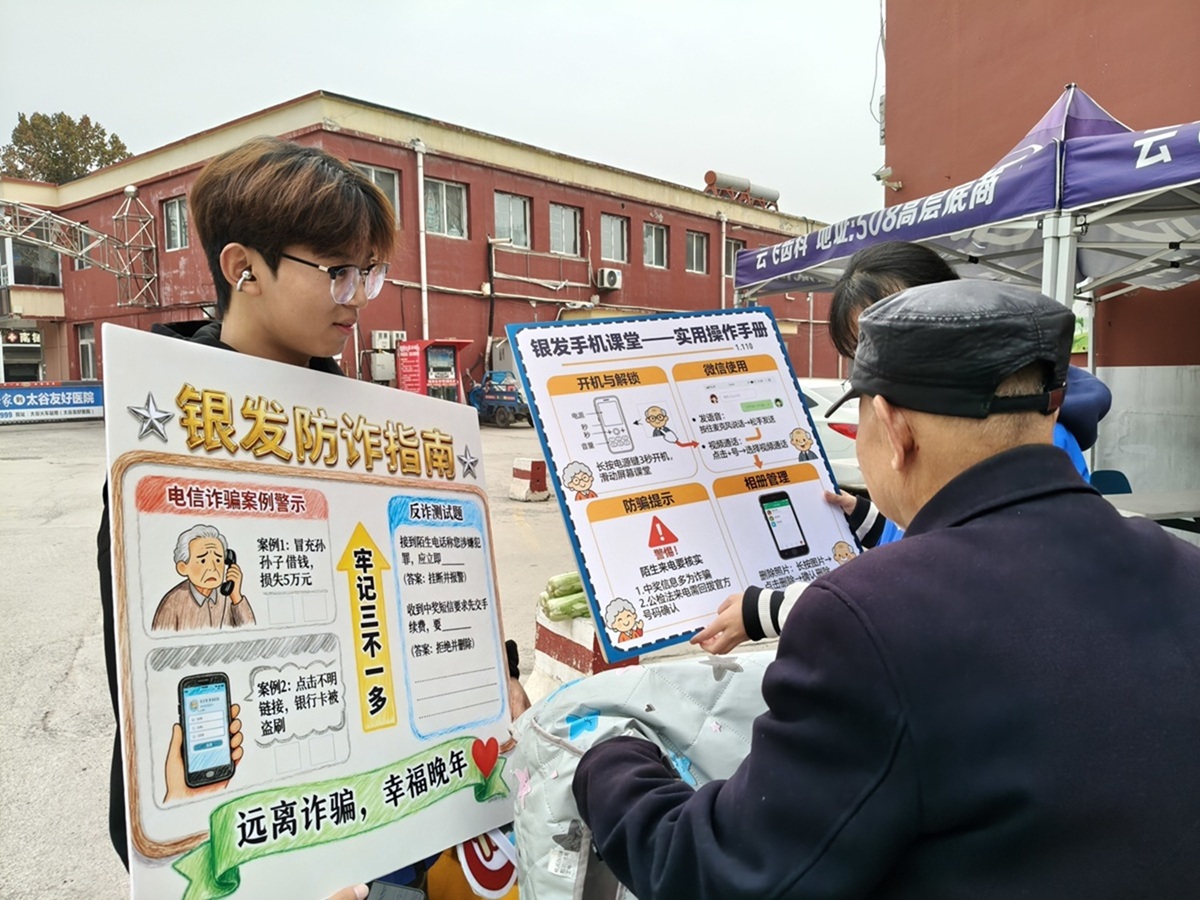 课堂还专门开设了“防诈骗小课堂”,志愿者们结合“中奖短信”“冒充客服”等典型案例,为老人们剖析骗局,筑牢安全防线,守护好他们的养老钱。