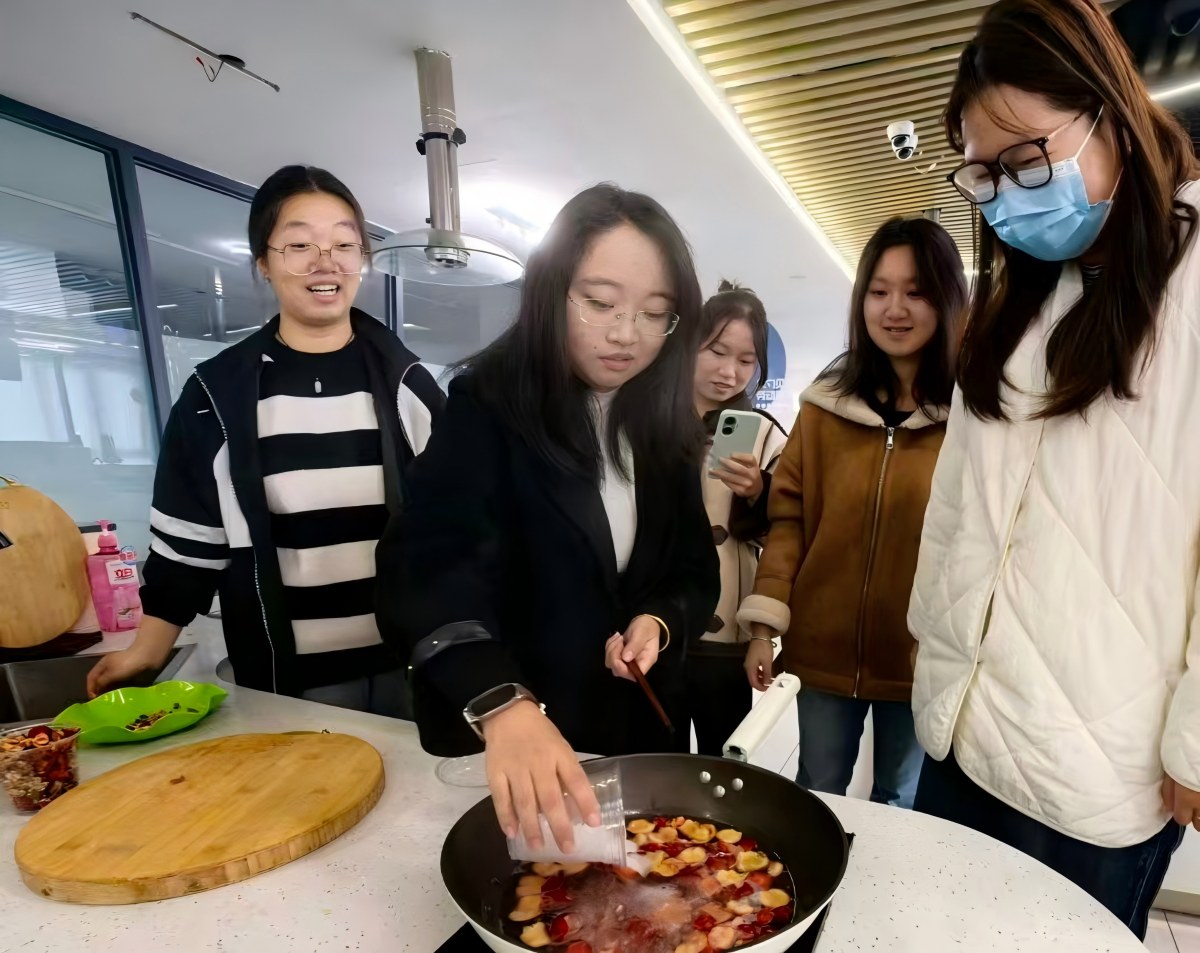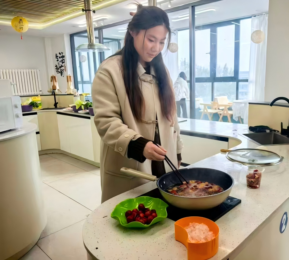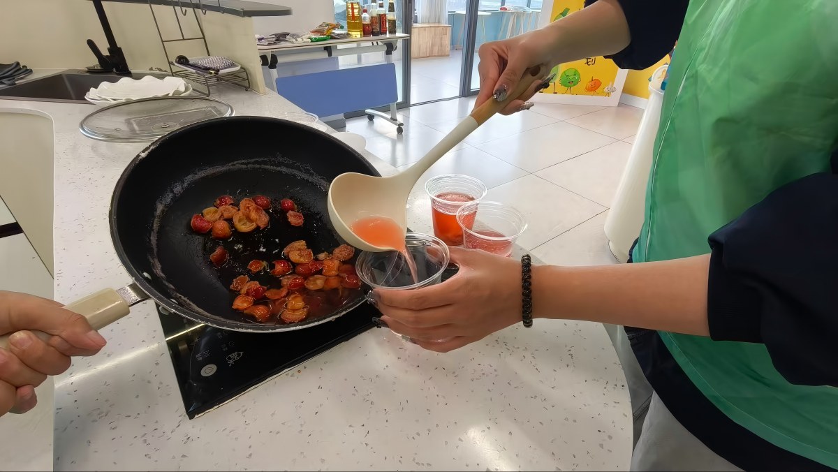 待汤品温热适口,大家携手熬煮的满满一锅山楂汤,经志愿者细心分装成杯后,逐一送到了每一位参与熬汤的小伙伴手中,轻轻抿一口,暖意顺着喉咙蔓延开来,数日带来的疲惫与烦躁,仿佛都在这一刻被这清甜抚平。