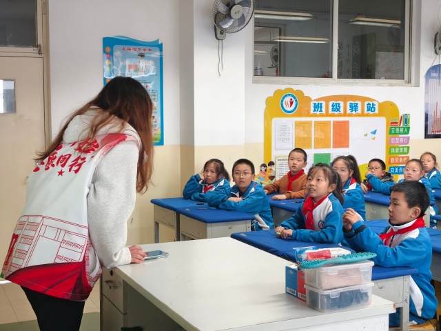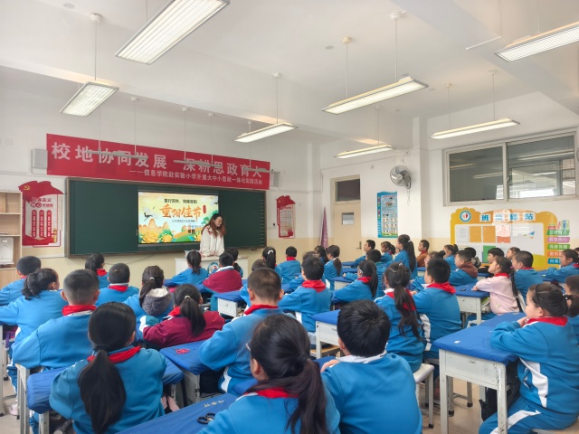 活动在轻松愉快的氛围中拉开了帷幕,讲台下坐着的孩子们眼中闪耀着好奇又兴奋的光彩。志愿者在台上声情并茂地讲述着重阳节的故事,从桓景剑斩瘟魔的传说,到古人重阳登高祈福的风雅,孩子们听得全神贯注,时不时发出惊叹声。在展示重阳节习俗图片时,看到古人佩茱萸、饮菊花酒的画面,孩子们纷纷议论起来,对古人的生活产生了好奇,志愿者们耐心地为孩子们解释着这些习俗背后的寓意,告诉他们佩茱萸是为了辟邪求吉,饮菊花酒则有祛灾祈福之意。孩子们一边听着,一边若有所思地点头。讲解中,志愿者不仅强调了节日背后的内涵,更引导孩子们思考“敬老”与“感恩”在当代生活中的意义,让传统与现实悄然对话。