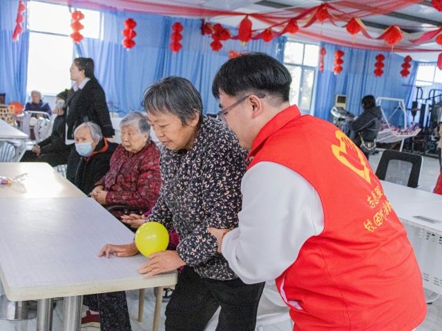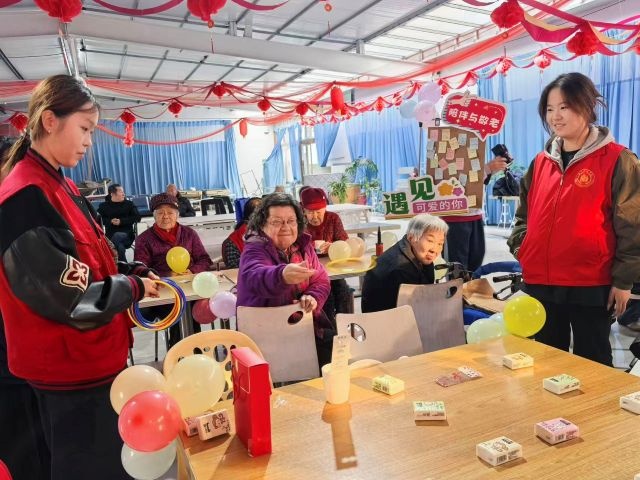 游戏互动区则处处洋溢着怀旧气息与欢乐氛围。“怀旧套圈”环节,志愿者提前将毛巾、木梳、卷纸等实用奖品整齐摆放,再将套圈分发至爷爷奶奶手中,全程在旁轻声鼓励、适时指导,用欢呼为套中奖品的老人喝彩,用笑容与安慰陪伴未套中的爷爷奶奶再次尝试,现场充斥着欢声笑语。