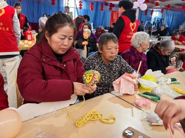 “轻趣纸杯消消乐”摊位以“低强度、高趣味、强陪伴”为核心,成了老人们最爱的“轻松挑战角”。整个游戏没有输赢,没有计时,重点就在“轻松参与”,奶奶拿起纸杯,看着顶端的乒乓球轻轻落在下一层杯口,再把空纸杯整齐摆在旁边,看着“小金字塔”一层层变矮,脸上的笑意也慢慢变浓。这场不慌不忙的“消杯”小挑战,让爷爷奶奶们在专注又放松的状态里,既动了手、练了专注力,更收获了许多的小乐趣。