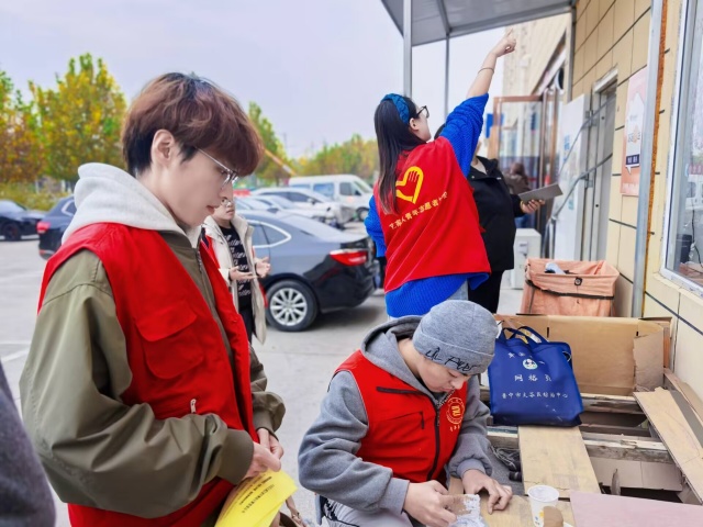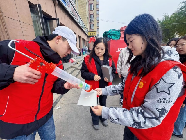 有的志愿者专注整理宣传资料,为后续宣讲做好准备;有的志愿者则站在社区建筑旁,抬手规划宣传物料的张贴位置。他们分工明确、协作有序,将 “奉献、友爱、互助、进步” 的志愿精神转化为具体行动,在参与社区精细化治理的实践中,不仅为社区环境美化和信息传递贡献了力量,更在动手实操中深化了对社会治理的认知,以青春担当诠释了新时代大学生的责任与使命。