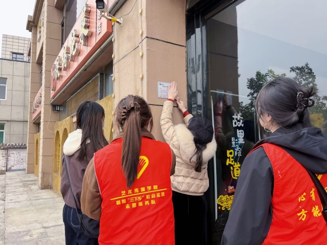 然而,任务执行过程并非一帆风顺。“我们刚拿出责任牌准备张贴,有的商户就皱着眉摆手说‘别贴别贴,我们这不许贴小广告。’,当时还有点委屈。”二组志愿者事后回忆道。面对商户的误解,志愿者们没有气馁,而是耐心向商户解释:“阿姨,我们是晋中信息学院的志愿者,不是贴小广告的,这是社区统一要求张贴的‘门前三包’责任牌,能帮大家明确维护门前环境的责任,让咱们社区更干净整洁。”