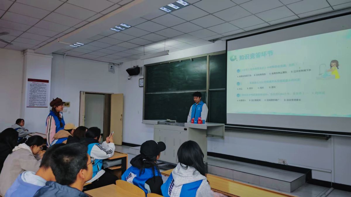 讲座结束后,知识竞答环节将活动氛围推向高潮。竞答题库紧扣活动主题,涵盖水资源常识、节水技巧、饮水安全、生态保护法规等多个领域,既有“我国水资源人均占有量约为世界平均水平的几分之几”等基础知识点,也有“科学放生需避开哪些敏感生态区域”等实践类题目。师生们热情高涨,纷纷举手抢答,部分同学还主动分享答题思路与生活中的环保小经验。激烈的竞答不仅帮助大家巩固了讲座所学知识,更激发了主动探索生态保护知识的积极性,让环保学习从“被动听”变为“主动学”。