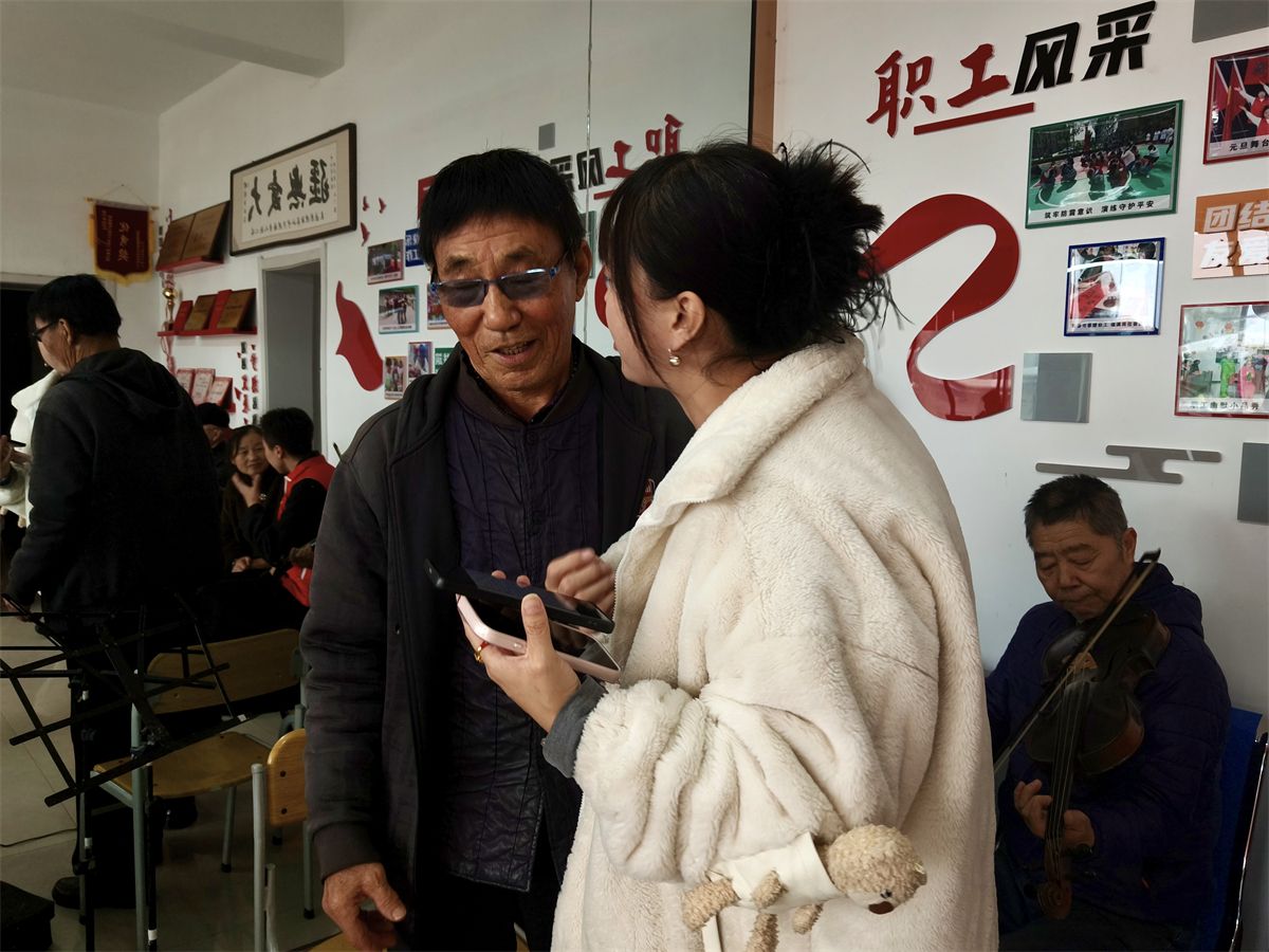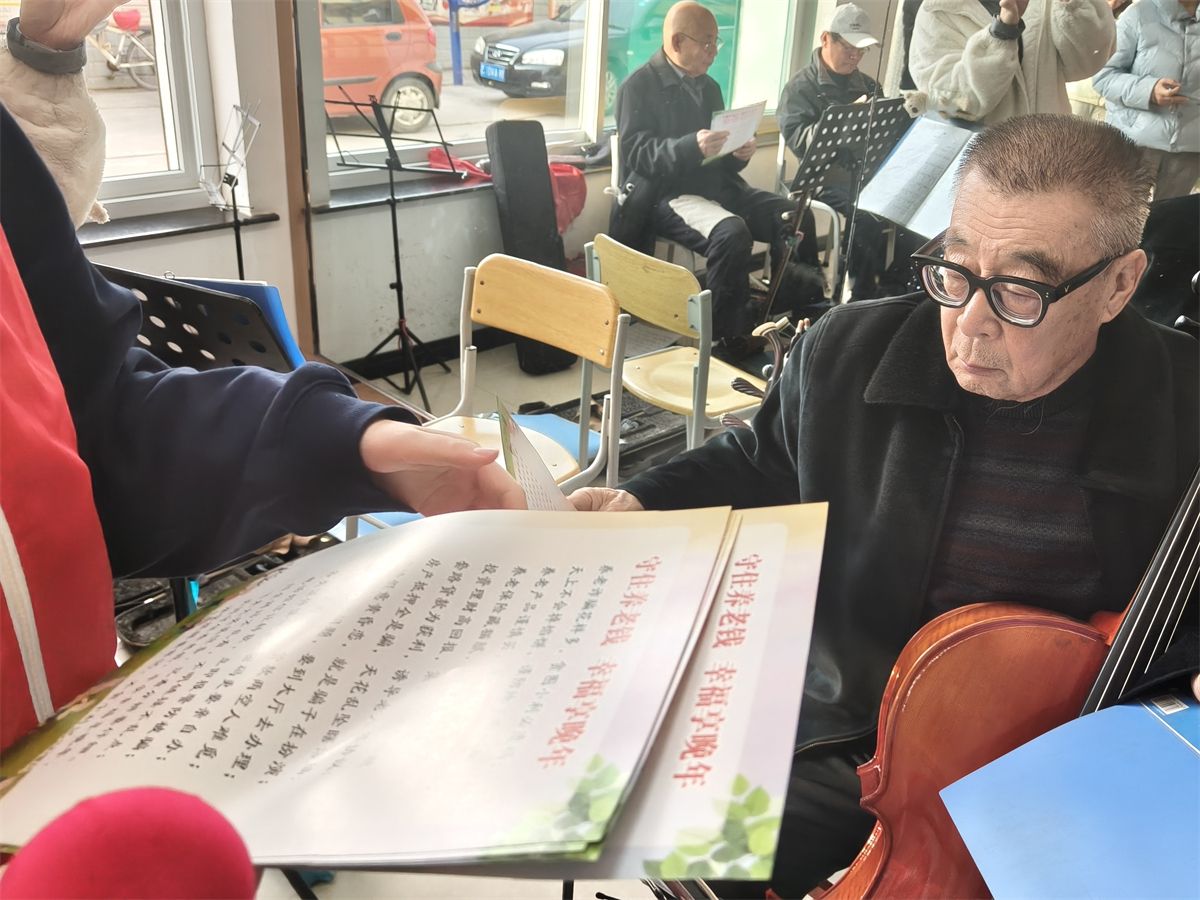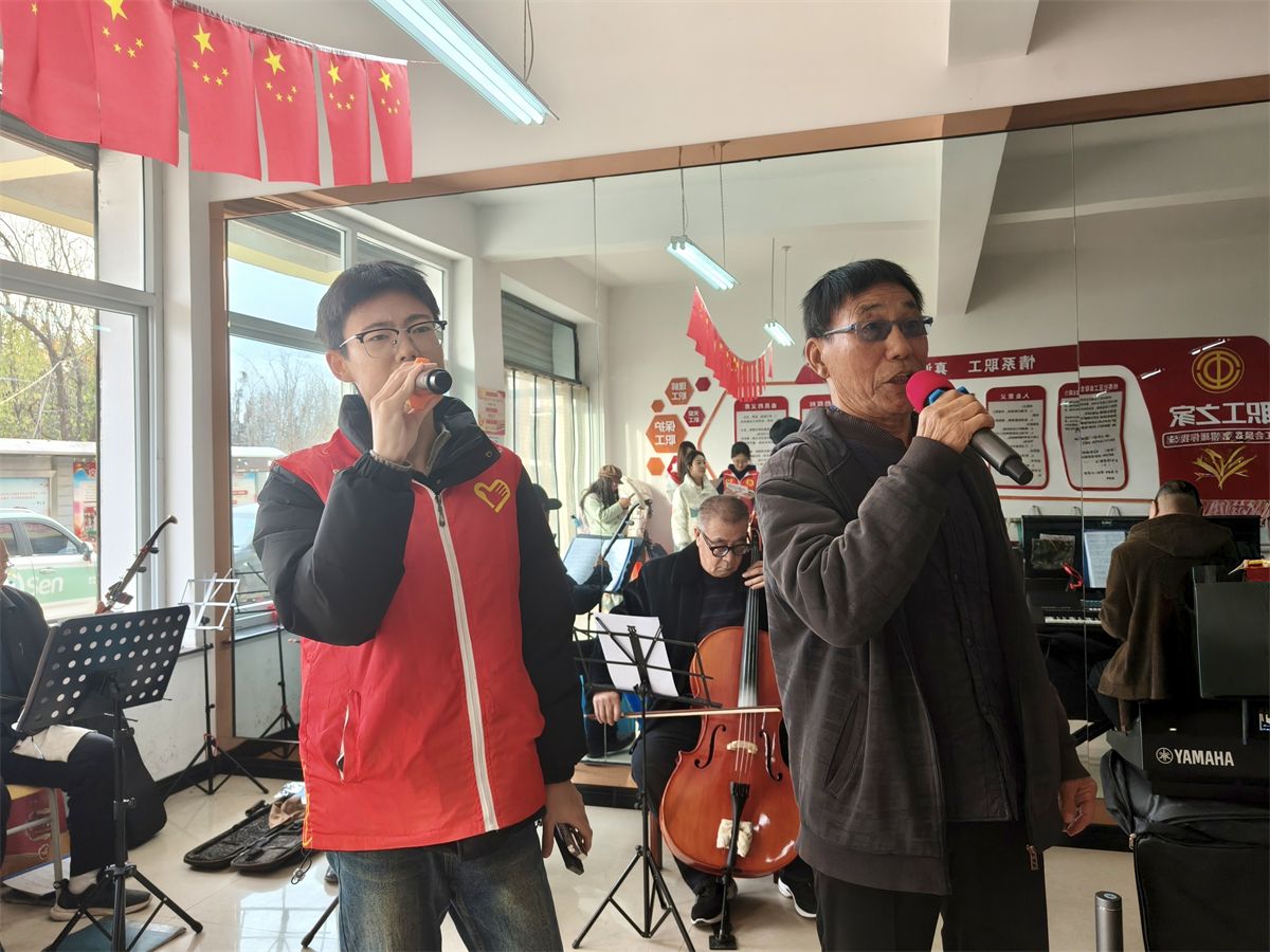 在老人们精彩演奏的带动下,现场的氛围达到了高潮。那首耳熟能详的《我和我的祖国》的旋律在活动室里响起。志愿者们自然而然地围拢到长辈们身边,一场自发的大合唱开始了。“我和我的祖国,一刻也不能分割……”老人们眼中闪着泪光,声音洪亮而充满感情;志愿者们青春的脸庞上洋溢着感动与尊敬。一老一少,声音交织在一起,不再是单向的给予与接受,而是心与心的同频共振,是情感与情感的双向奔赴。歌声飞出了窗外,温暖了整个午后。