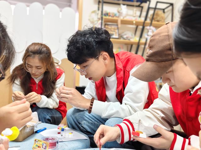 在活动筹备阶段,服务队成员细致筹备:提前对接专业理发志愿者,备齐剪发工具与一次性围布,同时精心制作串珠饰品与彩绘石膏娃娃,挑选色彩鲜亮、手感圆润的串珠,编织成款式简约的串珠挂饰与百搭手串,手绘图案、温馨生活场景等童趣纹样,每一件手工制品都凝聚着心意,以指尖温度传递真挚祝福。