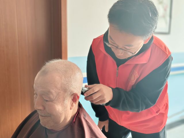冬阳漫洒融清韵,暖意盈怀焕新颜。11月12日下午,晋中信息学院银耀拾光专项志愿服务队在指导老师徐爽的带领下,在初冬时节赴约百福养老院,开展“情暖银发第七期”主题活动,解锁“公益剪发+手作赠礼+围坐畅聊”的助老方式。为践行尊老爱老的传统美德,让老人们在料峭冬意中收获清爽与温情,志愿者们携亲手编织的串珠挂饰、彩绘石膏娃娃赴约而来,以剪刀裁去岁月尘霜,以手作承载真挚祝福,以闲谈打捞时光故事,让这个初冬因双向奔赴的美好而格外温暖。