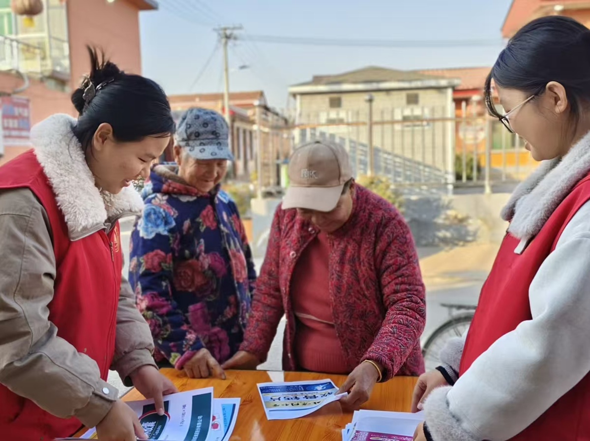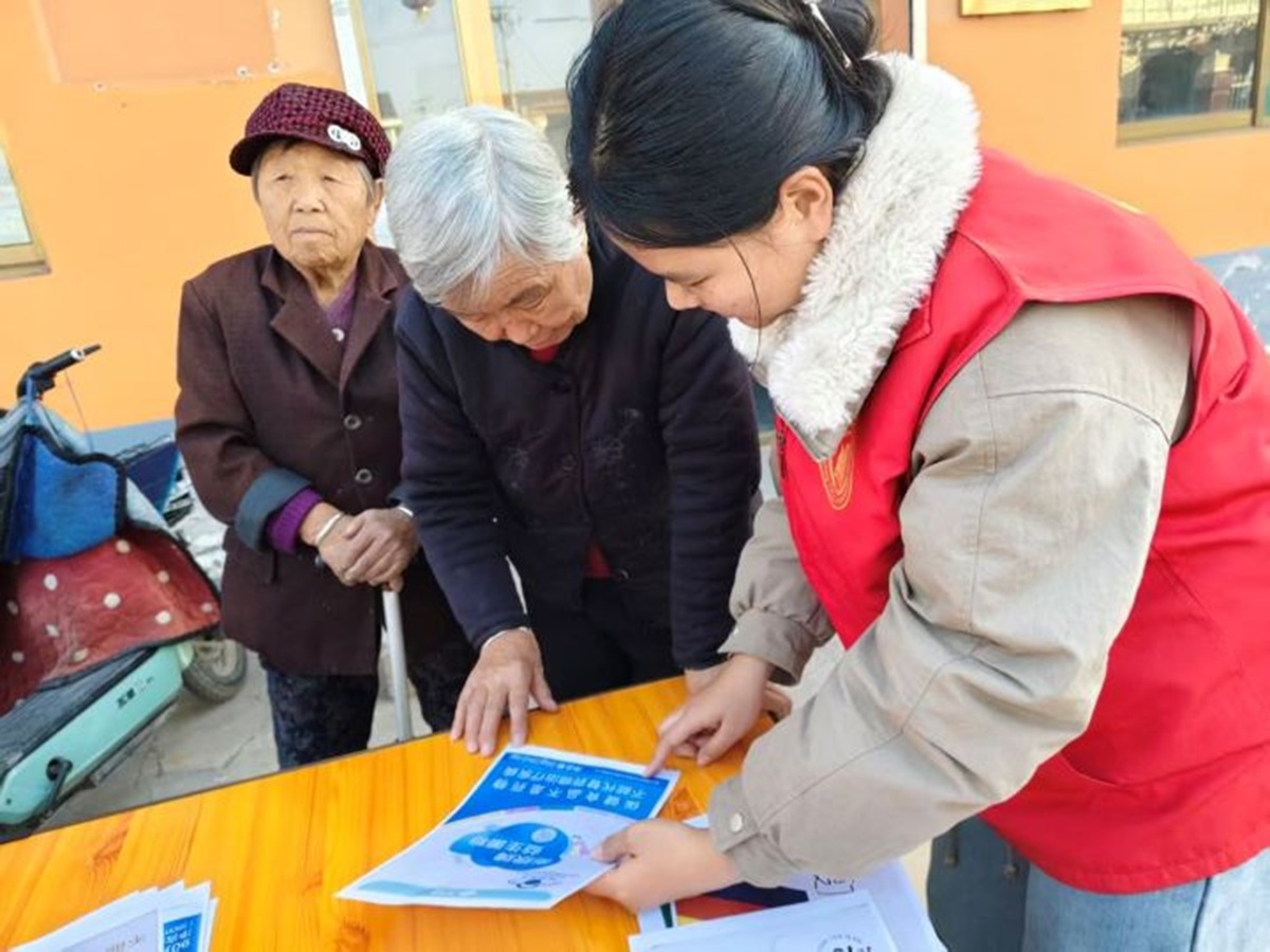 问答互动环节贯穿始终,志愿者针对药品区分、反诈知识等抛出问题,村民们积极回答,现场氛围热烈,学习热情高涨。
