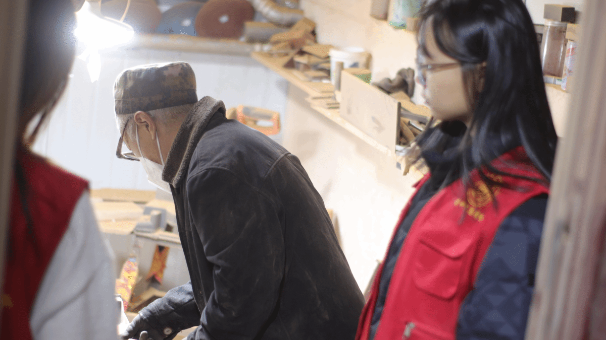 活动的首站是太谷晋剧博物馆的乐器制作工坊。在地下室狭小的空间里,摆满了锯子、斧头、刨刀等传统工具,空气中弥漫着木屑的清香。志愿者们近距离观摩了晋剧“四大件”——晋胡、二弦、三弦、四弦的制作过程。据非遗传承人苏师傅介绍,这些乐器的制作全靠手工打磨,匠人需凭借数十年的经验,通过敲击、听音来调整每一寸木材的厚薄,甚至椰子壳需经数百次砂纸打磨才能成为晋胡的共鸣箱。