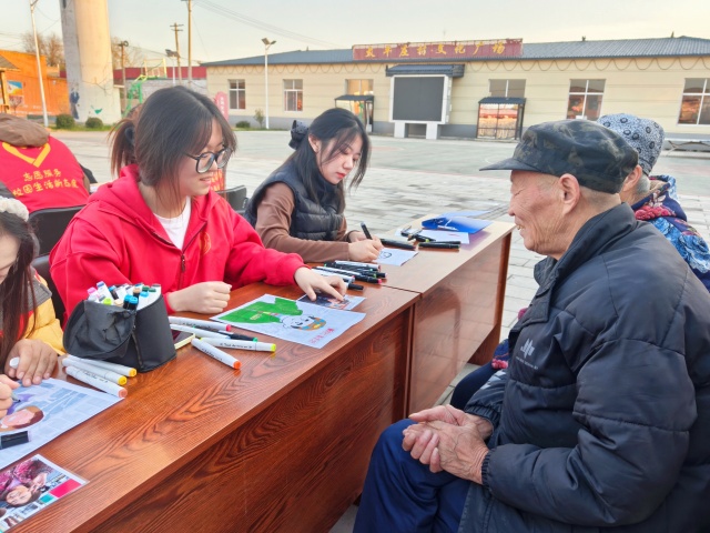 活动筹备阶段,志愿者们便深入太平庄村的街巷院落,挨家挨户走访慰问,为参与活动的老人拍摄高清肖像照。一句句亲切的“爷爷好”“奶奶保重身体”,一次次耐心调整拍摄角度,不仅定格了老人们历经岁月沉淀的容颜,更让这份牵挂与尊重悄然住进老人心里。这些饱含温度的照片,成为后续肖像创作的珍贵蓝本,只为给每位老人定制独一无二的彩色画作。