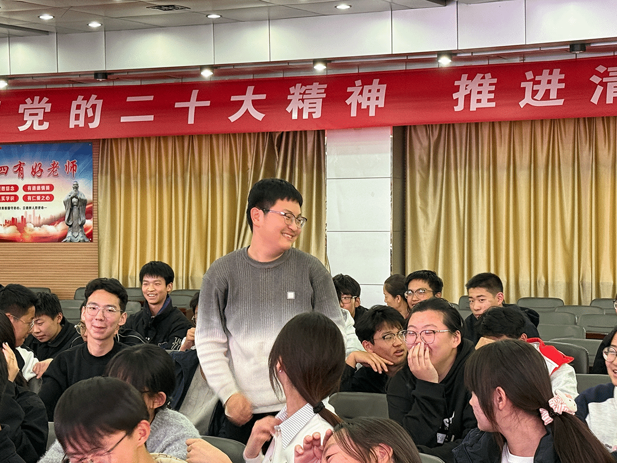 台上扮演小组们充满趣味的饰演在为下面的同学们带来了阵阵欢笑后,游戏主持人吕景怡也适时地出现用对几位“主演”的提问,引发了同学们的深思:假如我是情景里的主角,我能做到不在意他人看法做自己吗?再假如是我是情景里的室友/霸凌者,我不是有强迫或者半强迫别人改变他们自己的时候呢?常言说见贤思齐,见不贤而内自省。情景剧的思想精髓,常常就在这欢乐后的思索中才得以体现,现场两位主持人对此把握得恰到好处。在总结了认同自我的小技巧后,本期的美好时光也走到了尾声。
