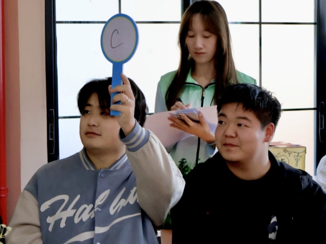 答题过程中,各团队成员在规定时间内充分讨论、分工协作,快速梳理知识点、敲定答案并书写在白板上展示。各团队限时讨论、分工协作答题,其中一组表现亮眼:队长统筹节奏,队员分攻政策解读与产业核对,当遇到“乡村旅游产业融合发展模式”这一模糊知识点时,五人迅速围拢展开热烈探讨,在短时间内形成统一思路并敲定答案。整个过程中,他们高效的分工、精准的知识调用与流畅的协作配合,充分展现了扎实的乡村振兴专业知识储备与良好的团队协作精神。