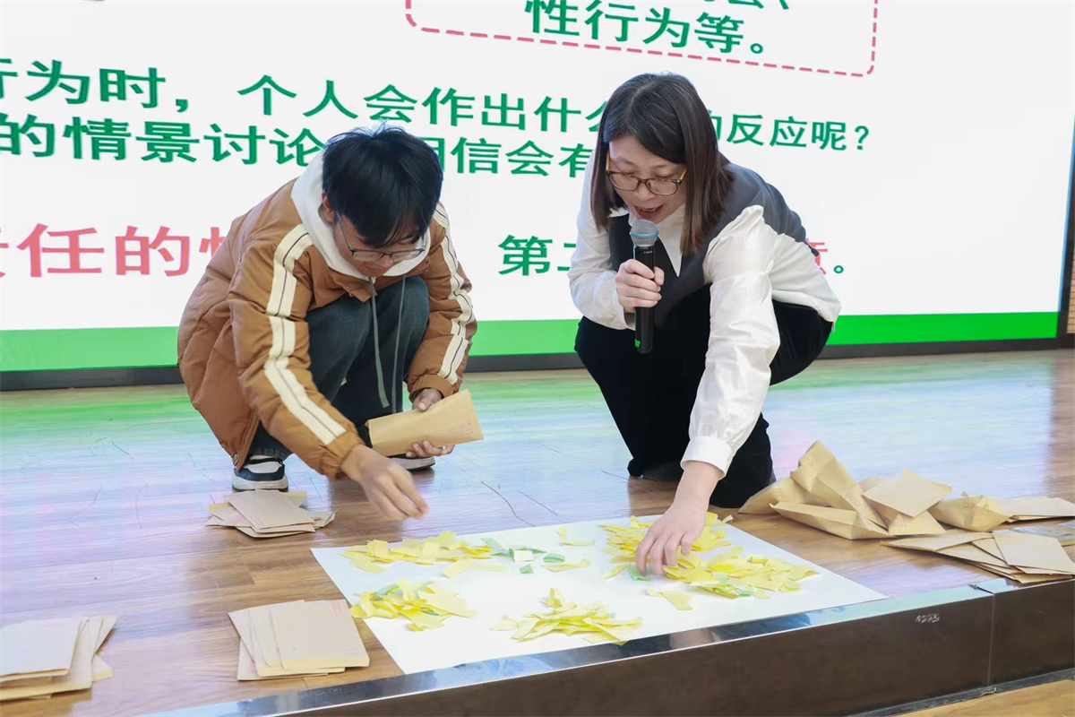 找到合适的恋爱后,接下来就该进入到性行为决定的阶段了,吴老师准备了四个真实情景的角色扮演,通过六个小组的演绎,让“自爱自重、保护他人”的理念在模拟实践中变得清晰而坚定。