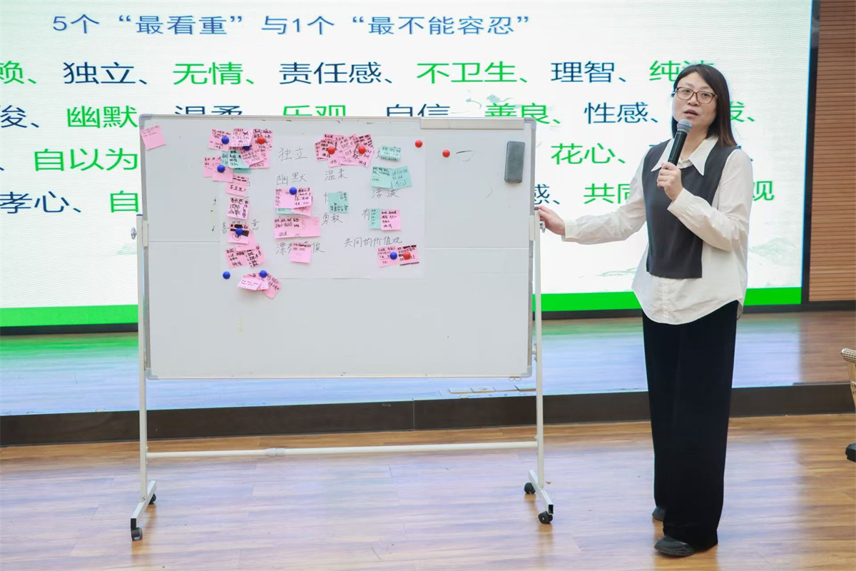 在“五色拼盘:谁更适合我”的活动中,酸酸甜甜的恋爱话题引起了在场每个参与者的兴趣。每个人都动动手,写下自己理想的那个TA应有的五大特质与最不能接受的特质。但经过层层筛选,当最终的选择被贴满白板时,“真诚”与“责任感”成为了全场共鸣的最高频词汇。