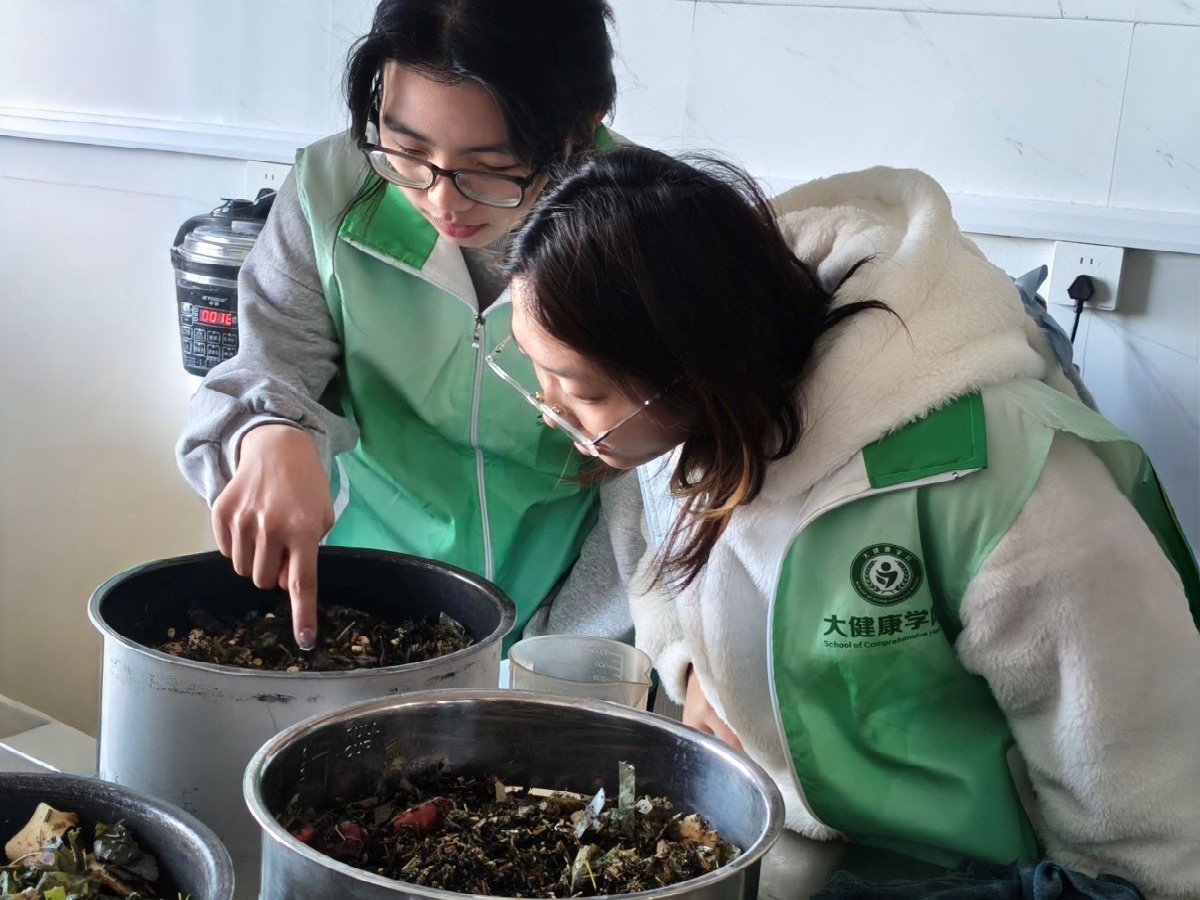 氤氲的药香在煮药室里缓缓流淌,志愿者们围在药师身旁,认真聆听着药材配伍的门道。志愿者精准称量每一味药材,“解表药要轻煎,滋补药需久熬,火候得跟着药性走。”志愿者们小心翼翼地将药材投入药罐,药材在水中渐渐舒展,苦涩中带着清香的药味愈发浓郁。药师叮嘱“头煎武火煮沸,再用文火慢炖半小时。”当药香达到最浓郁时,分装到干净的容器中,每一滴都凝聚着耐心与暖意。