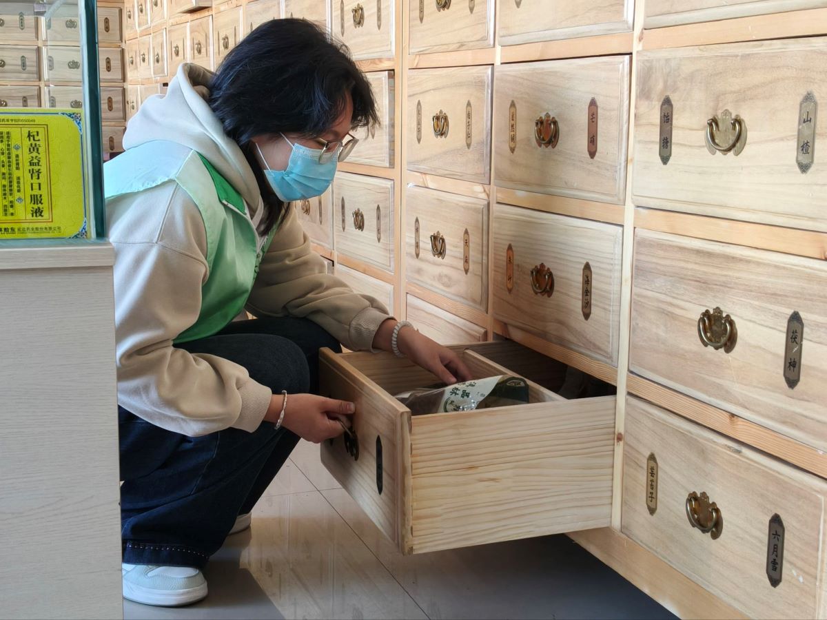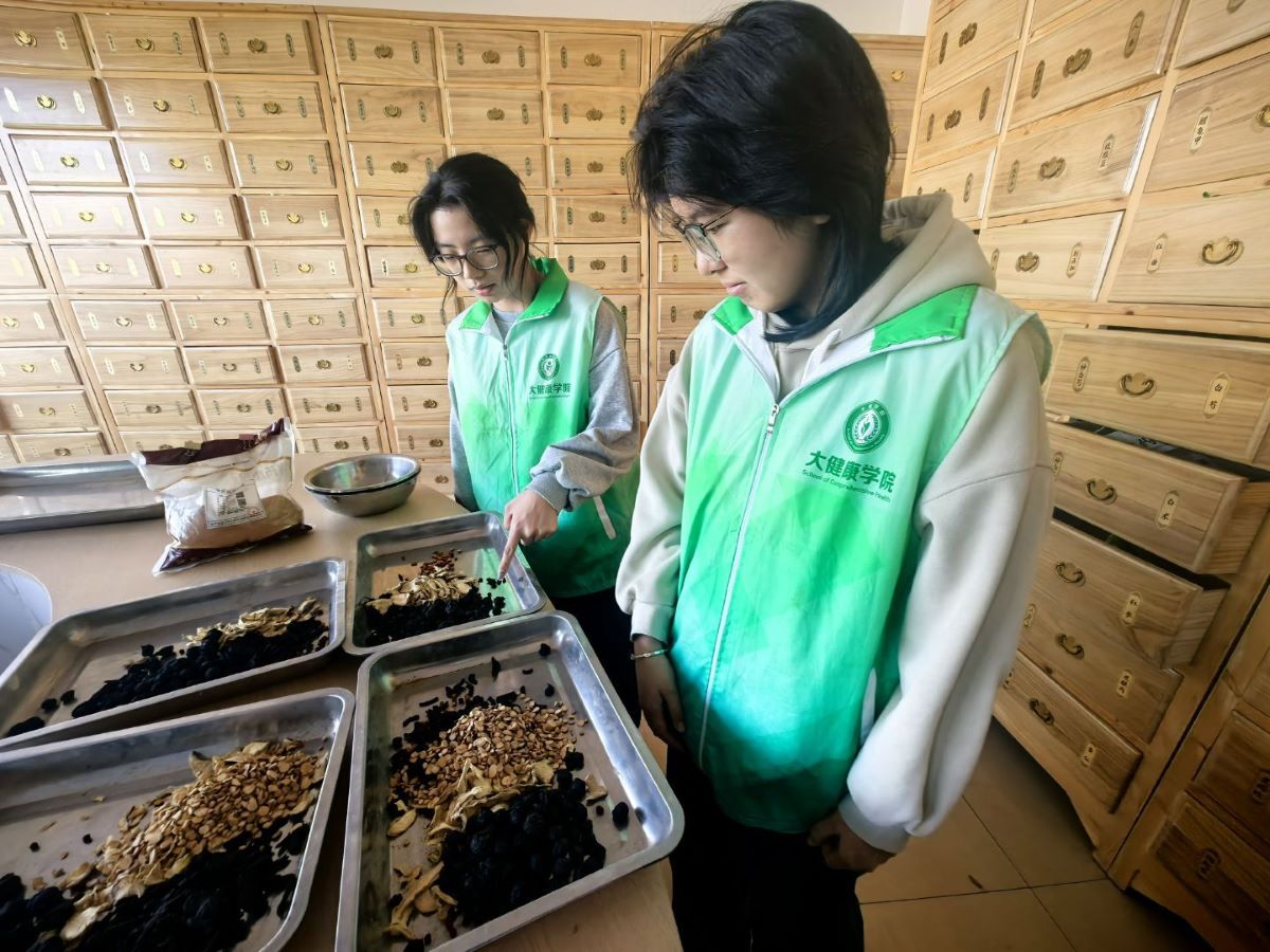 志愿者的身影在药香间灵动穿梭,指尖轻触药材,好奇追问,拆解学习着药材分类与贮存的隐秘:数百种饮片在“看、闻、摸”的轻触里苏醒,秋日润肺的银耳百合、冬日御寒的黄芪当归,寻常食材里蜷着的养生密钥,便在鼻息与指腹间,舒展成可触的暖意。