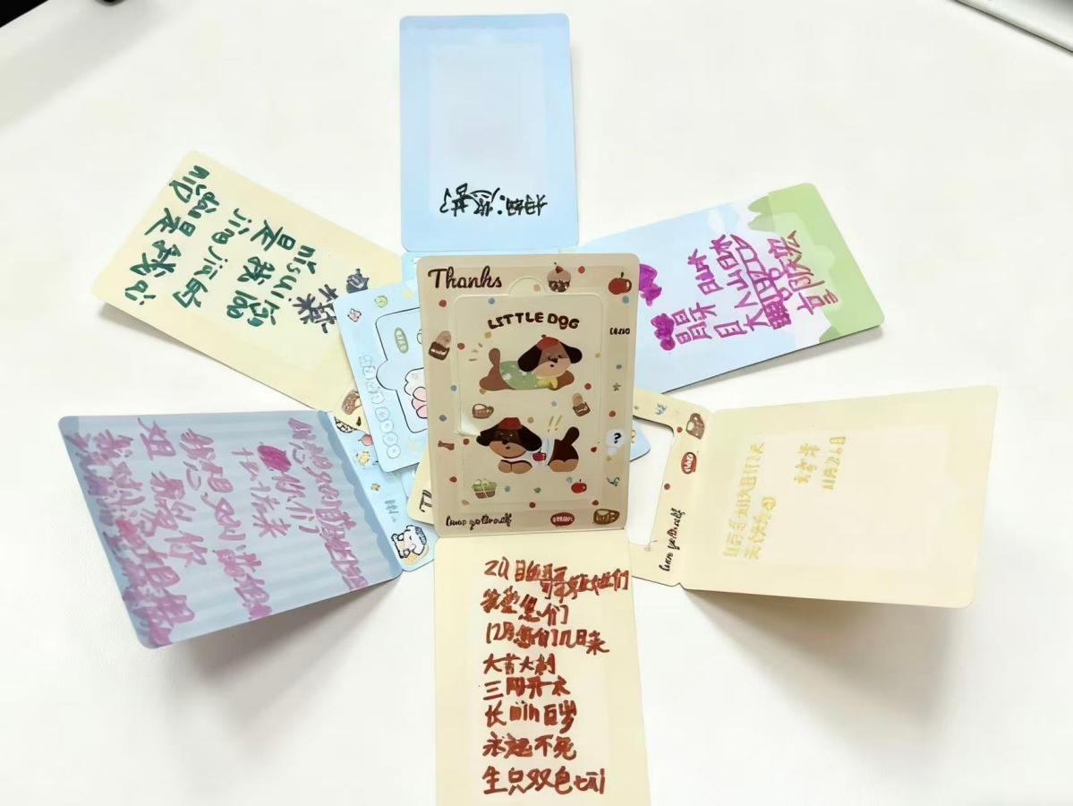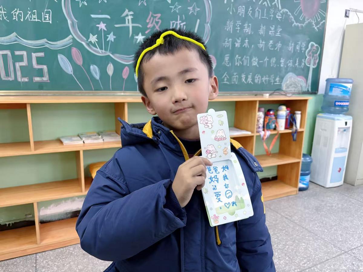 “一纸贺卡承心意,万般温情系笔尖。”随着印着雪花等图案的冬日主题贺卡与彩笔摆上桌,活动自然过渡到情感表达环节。孩子们静下心来,用自己的方式传递冬日暖意。他们捧着贺卡,认真地思考着要写的话语。笔尖在纸页上轻轻游走,将心底的感恩与心愿细细书写字迹或许稚嫩,语言或许简单,但每一句都承载着纯粹的情感,每一张贺卡都成为连接心灵的纽带。