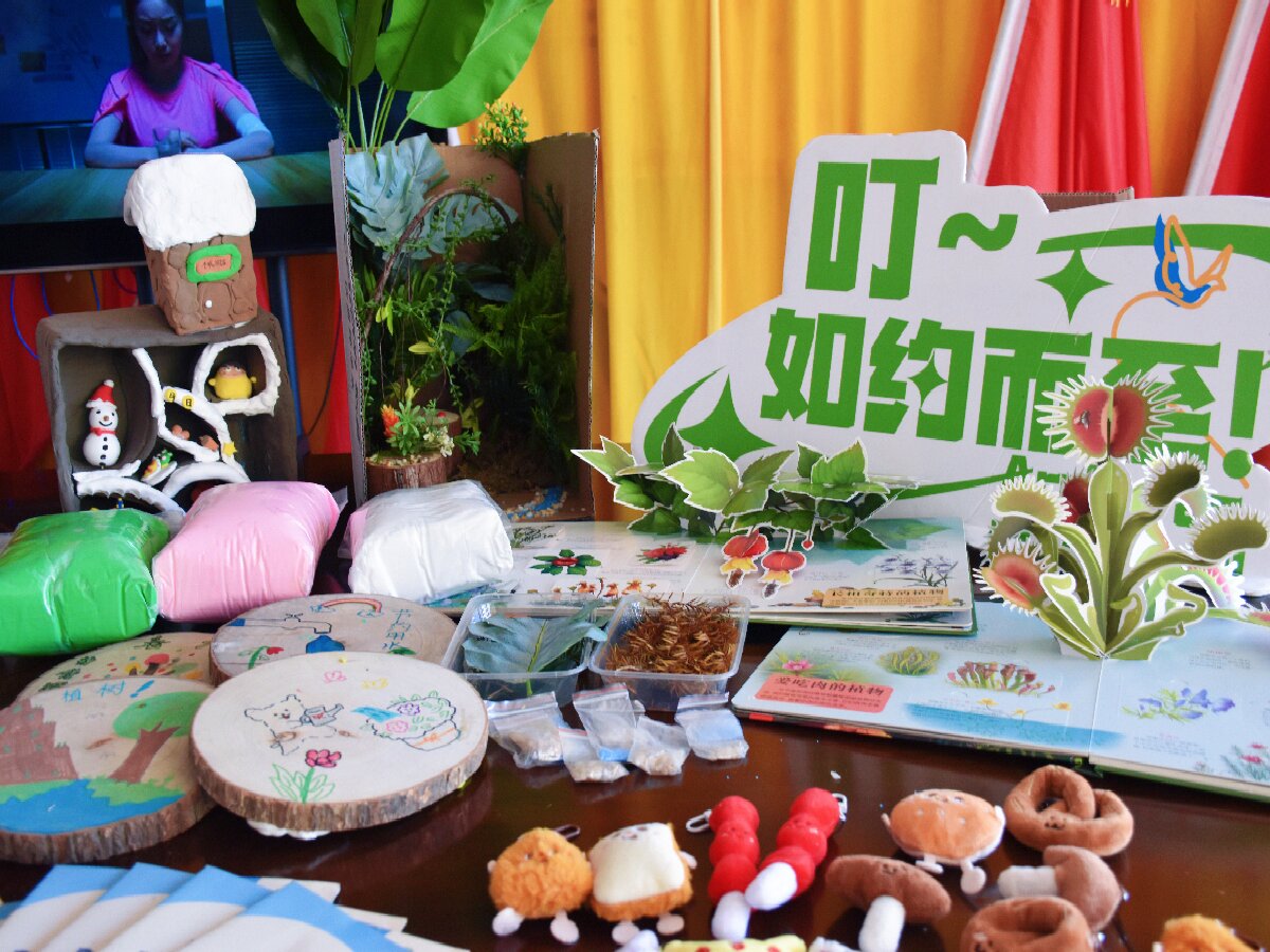 立体生态书让生态知识直观可感,这是志愿服务队带来的科普巧思。志愿者王佳欣轻轻翻开,多层纸艺打造的雨林场景瞬间立体呈现,露生层乔木凸起、树冠层藤蔓垂挂,灌木与苔藓的纹理触手可及。并趁机讲解书中的生态结构:“雨林就是这样分层栖息着不同生物,大家手工创作时,完全可以参考这种自然比例呀。”这翻开的不仅是立体科普书,更是一扇通往自然的窗,让生态认知升华为敬畏生命、守护生态的价值追求,让家园情怀沉淀为代代相传的文明基因。