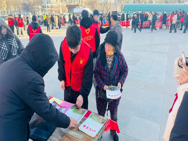 路口边,他们凑到裹着小熊挡风被的车主旁,把宪法讲成了“出门能用上的实在话”;广场上,迷彩装混着志愿红的组合超吸睛,连拎着菜袋的阿姨都停下脚步听讲解;连路人刚转过街角,递来的宣传册就把法律知识送进了手里……从车边到街巷,这些年轻的身影把“高冷”法条揉成了暖乎乎的家常,每一次俯身讲解、每一回递册微笑,都是青春与法治最生动的双向奔赴——原来守护公平正义,也能这么接地气、这么有温度!