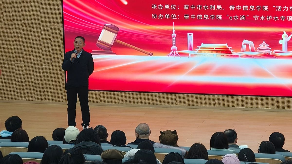 正值12・4国家宪法日,12月5日下午,一场以“学习宣传贯彻习近平法治思想推动宪法正值深入人心——水利领域法治建设专题宣传”为主题的活动在山西省晋中市晋中信息学院成功举办。此次活动由山西省水利厅主办,晋中市水利局、晋中信息学院“活力社团”辅导员工作室共同承办,晋中信息学院“e水滴”节水护水专项志愿服务队协办,晋中市水利局相关领导及工作人员孟锡政、翟忠庆等与晋中信息学院师生代表、“e水滴”志愿服务队成员齐聚一堂,共话水利法治建设,共推节水护水实践。