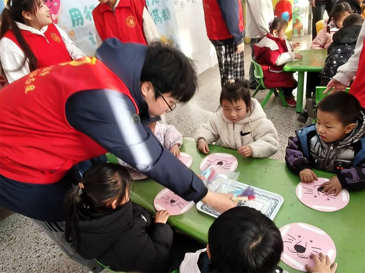 圆形卡纸当狮脸,长条卡片做“鬃毛”,小朋友们低着头,小心翼翼地把彩色卡片贴在狮子脸周围。“这就像给眼睛‘围上保护罩’哦!”志愿者轻轻帮小朋友理平翘起的卡片,“不能让脏东西靠近眼睛,也不能用小手揉眼睛,就像不能让小狮子的‘护目镜’乱掉一样。”话音刚落,一位小朋友突然捂住眼睛:“我记住啦!以后不揉眼睛,还要提醒爸爸妈妈也保护好眼睛!”那认真的小模样,让旁边的志愿者心里暖暖的——原来,把护眼知识变成孩子能理解的“小比喻”,就能让“爱护自己”的种子悄悄发芽。