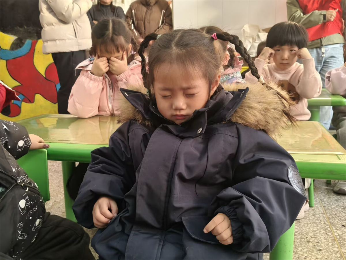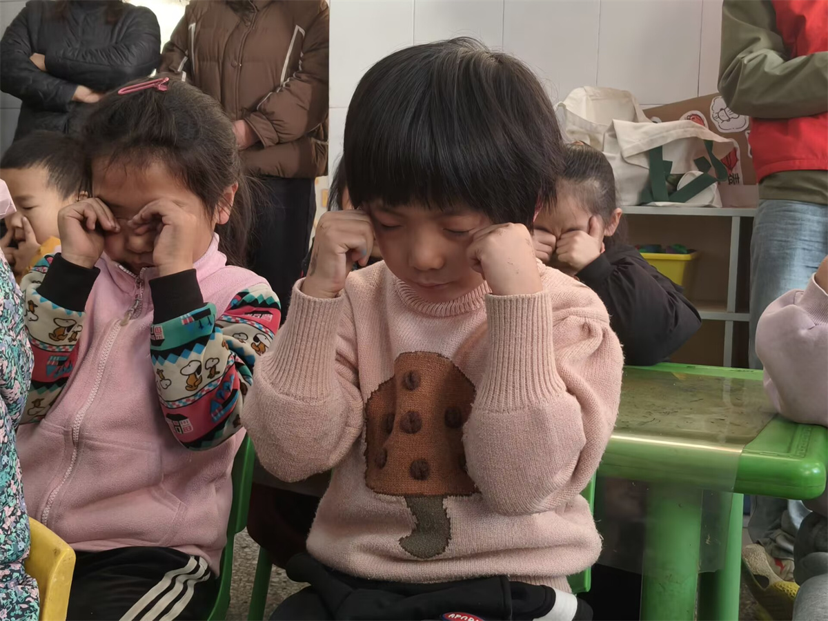 如何让传统的眼保健操不再单调?志愿者们有妙招——他们变身活力十足的“护眼教练”,创编出充满节奏感和故事性的趣味口令。“一起来给‘小太阳’按摩吧!一圈、两圈,找找光亮在哪里?”孩子们跟着有趣的指令,做得格外起劲。现场早已超越传统的操练,化身为一个欢快的“护眼能量站”。孩子们的脸上不见勉强,只有投入游戏般的专注与欢乐。在阵阵笑声与创意口令的环绕中,正确的眼保健操姿势不再是需要记忆的负担,而是变成了一种自然而然,甚至令人期待的习惯。科学护眼的理念,就这样被巧妙地织入了童趣的节奏里,随着每一轮“充电”和“探索”,深深植入孩子们的心中和行动里。