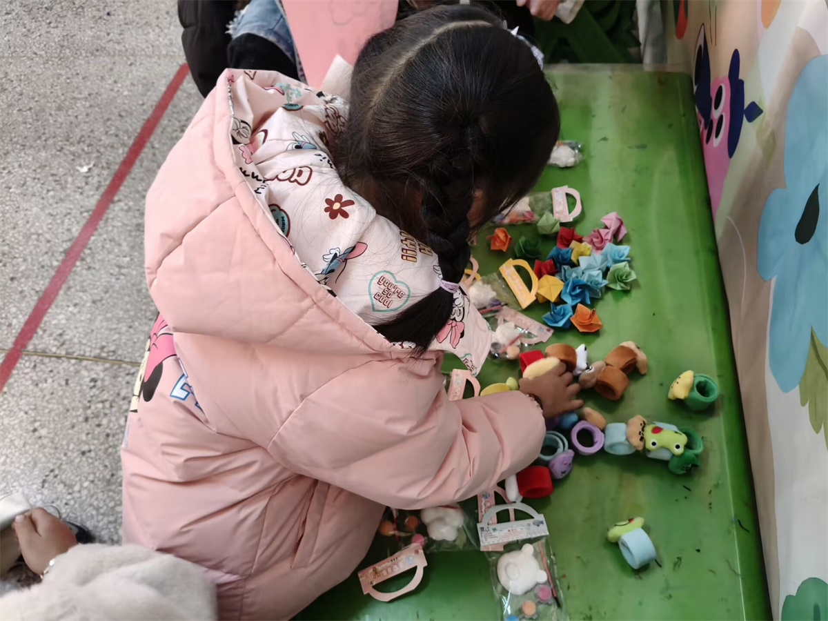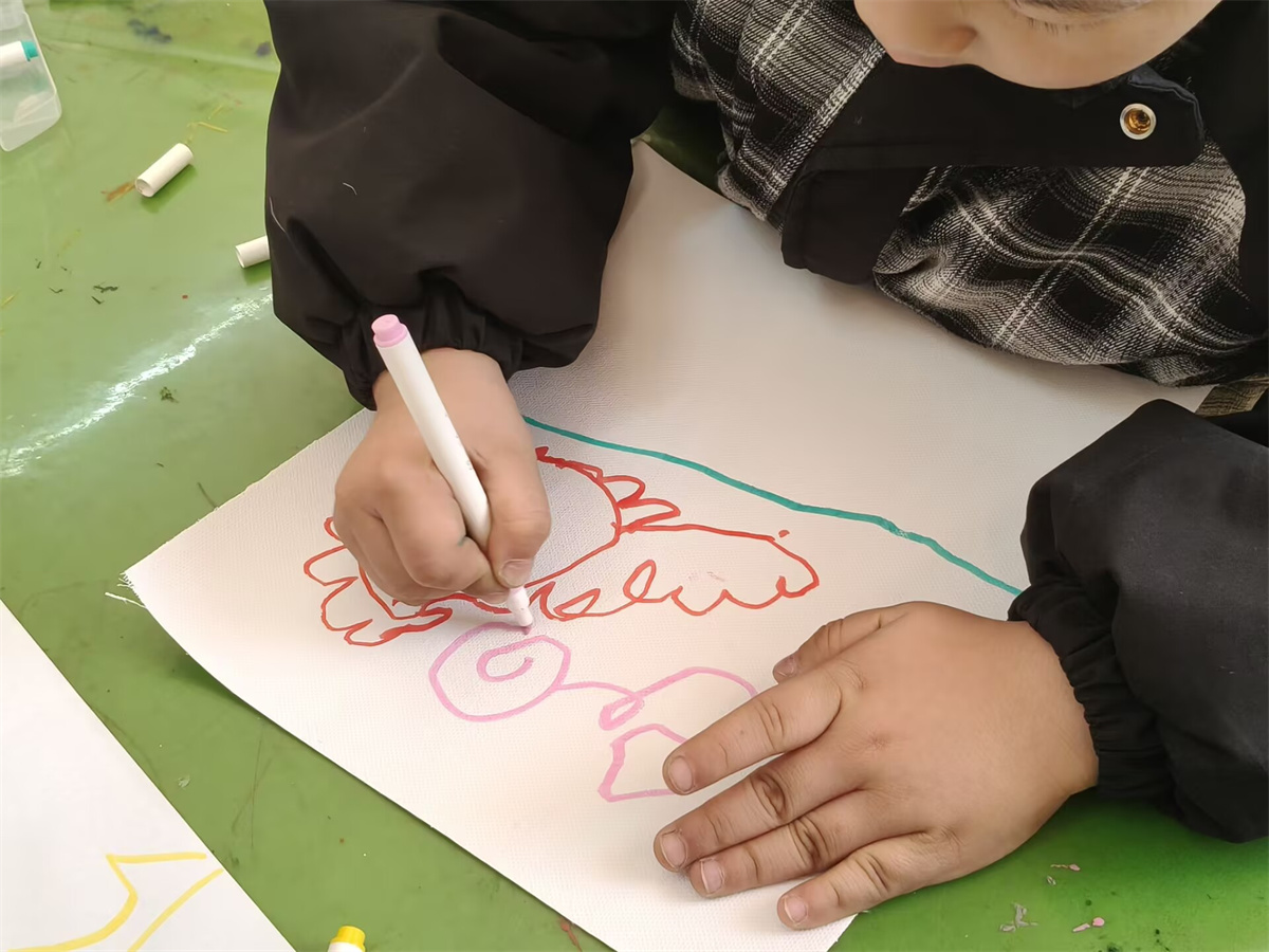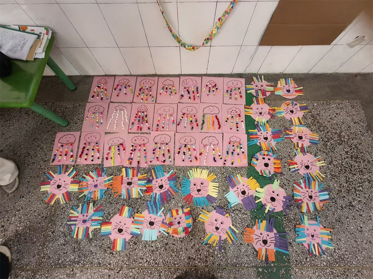 教室里,红橙黄绿的小毛毡球成为了最受欢迎的“魔法材料”,在孩子们手中仿佛被赋予了生命。在志愿者的耐心引导下,孩子们专心致志地沿着轨迹粘贴,创作属于自己的“彩虹雨”。“姐姐,我做的彩虹能让眼睛一直亮晶晶吗?”天真地发问引得笑声一片。在缤纷色彩的视觉盛宴背后,是一堂精心设计的“沉浸式视觉训练课”:辨识与搭配颜色,悄然锻炼着孩子们对色彩的敏感度与分辨力;将小球精准贴合在细窄的轨迹上,则是一场对手眼协调能力和专注力的趣味挑战。孩子们全神贯注,仿佛小小视觉工程师,正在搭建一座通往清晰世界的桥梁。当阳光透过五彩小球,在孩子清澈的眼眸中投下细碎光彩时,科学护眼的理念已悄然随“彩虹”降落心田。