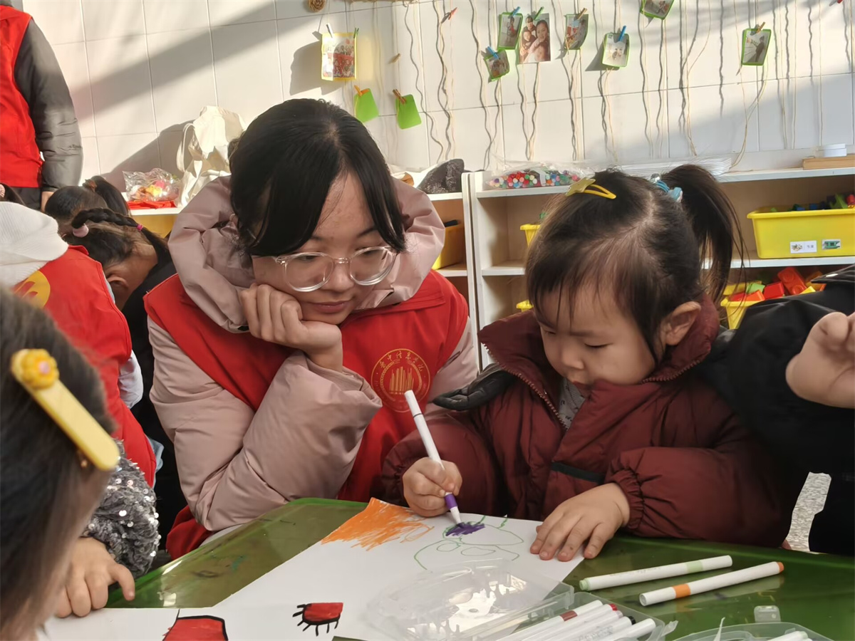 画纸上,流淌着孩子们眼中最珍贵的风景:妈妈的笑脸、飞舞的蝴蝶、浩瀚的星空。志愿者们俯身欣赏,轻声交流:“你画的世界这么美,如果看不清楚了该怎么办呀?”“那我就天天做操,少看平板!”一个小男孩不假思索地回答,还在画纸一角添上一双特别明亮的大眼睛。画笔连接着此刻的创造与对未来的承诺,纯真的画作成为守护视力最动人的理由。这一幕,让在场的志愿者们深深触动:孩子们用画笔记录下眼中的美好,也在不经意间许下了保护眼睛的承诺。