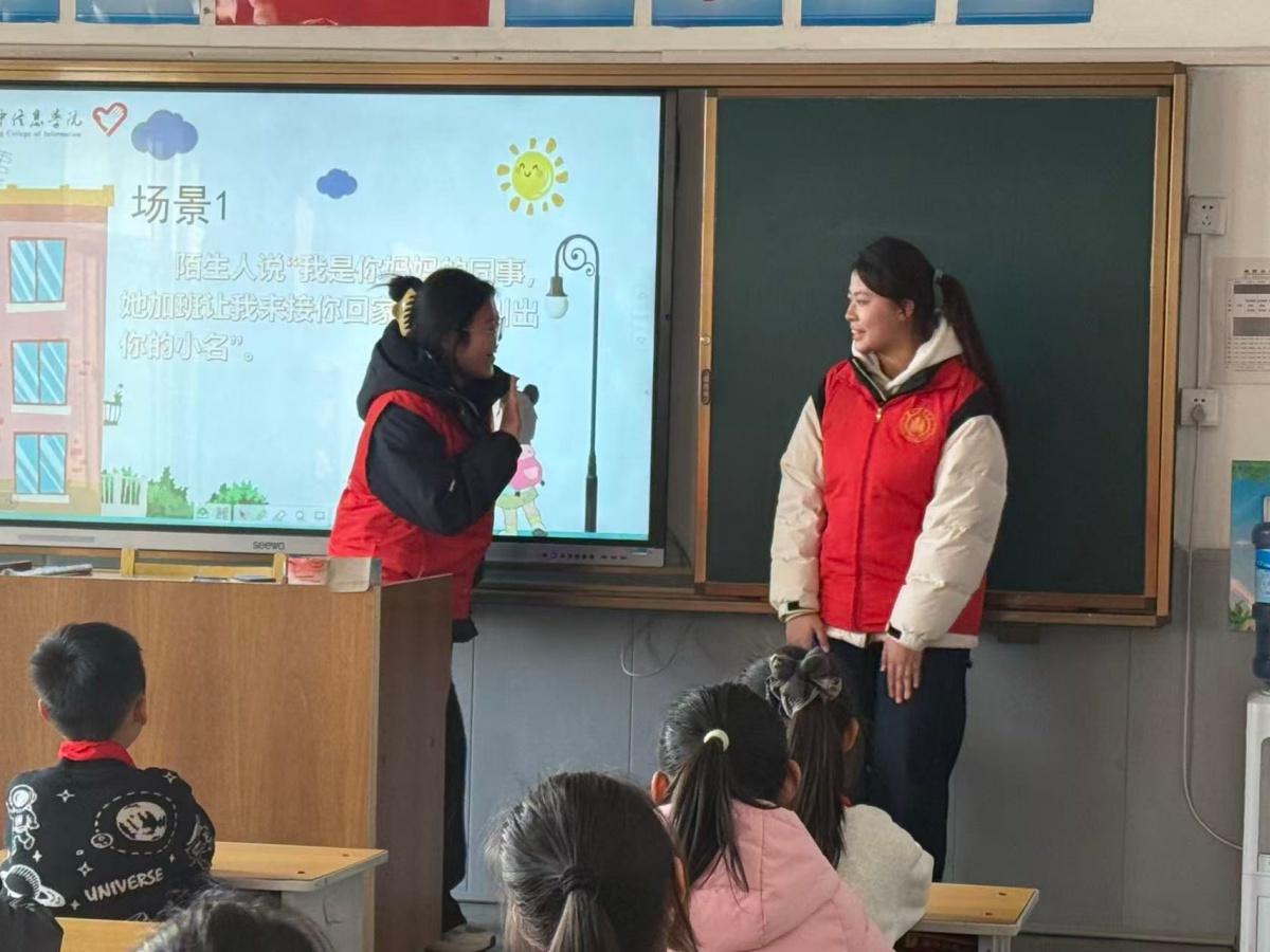 12月10日下午,晋中信息学院益惠向阳专项志愿服务队走进城西小学的校园,开展向日葵·向阳计划第三期——志愿小卫士,安全伴成长之防拐防骗主题活动,为二年级小朋友带来了一堂趣味盎然又干货满满的安全启蒙课。本次活动精准适配低龄儿童注意力特点,将时长设定为40分钟,通过多元互动形式让孩子们在轻松氛围中学习安全知识。