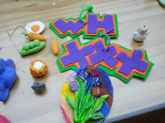 参与者们在黏土区专注捏制属于自己的“心灵小物”。许多人选择塑造象征坚韧的仙人掌摆件,在捏塑的过程中逐渐沉静心神。完成造型后,参与者在小卡片上写下当下的情绪或寄语,将情感融入作品之中。指尖与黏土的触碰,让思绪随之沉淀,压力也在轻柔的塑形中悄然消散。