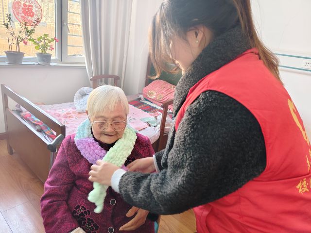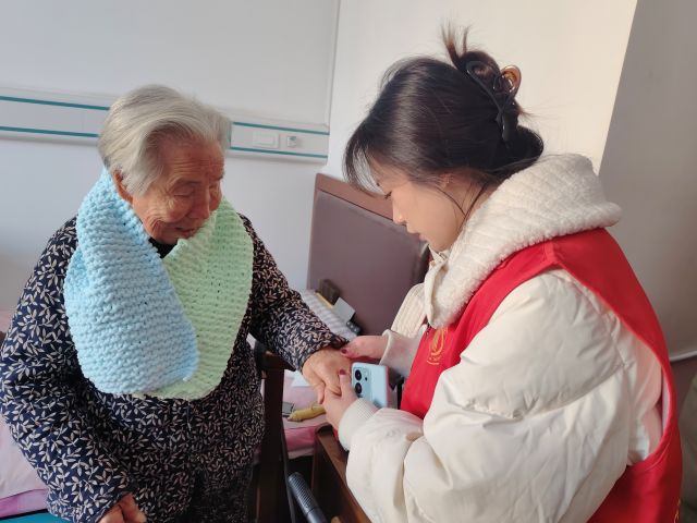 活动当日,养老院里暖意融融。志愿者们将亲手编织的围巾逐一送到老人手中,细心地为他们围上,抚平褶皱。“这条围巾真暖和,颜色也好看!”老人们抚摸着围巾,脸上露出欣慰的笑容。围上围巾的老人们,眉眼间满是欢喜,原本略显清冷的冬日,因这份贴心的关怀变得格外温馨。