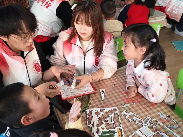 12月17日下午,由晋中信息学院淬炼商学院·国际商学院主办、红色前行专项志愿服务队承办的第六期红色艺术展“拼接红色地标·感悟时代变迁”活动,在桃园堡幼儿园温情开展。志愿者与幼儿携手互动,以趣味鲜活的形式传递红色力量,为幼儿播撒红色种子,筑牢红色启蒙教育根基。