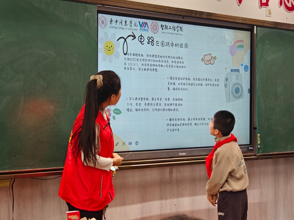 12月19日下午,晋中信息学院智能工程学院“星智益行”专项志愿服务队前往太谷区南关小学开展“科技大冒险!科技国防之旅‘燃爆’啦”志愿服务活动,当好奇心在心底悄悄萌芽,对未知世界满是向往,当小小的肩膀渴望扛起责任,成长路上的每一次探索,都藏着向阳而生的力量!